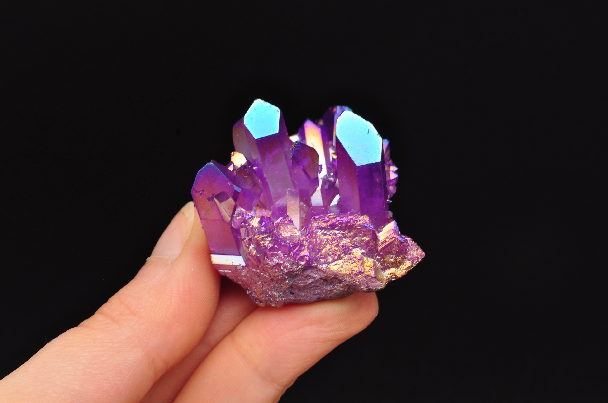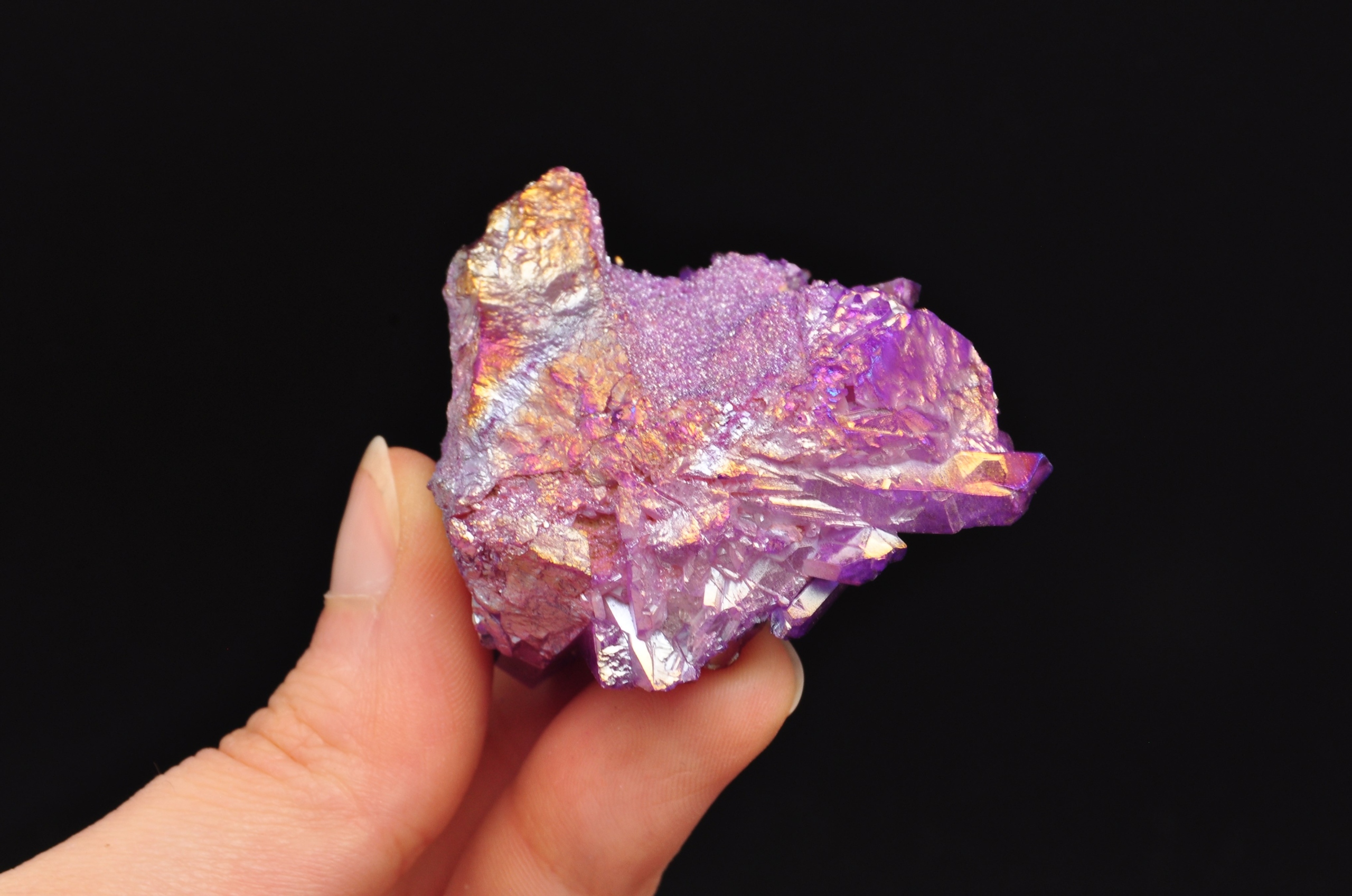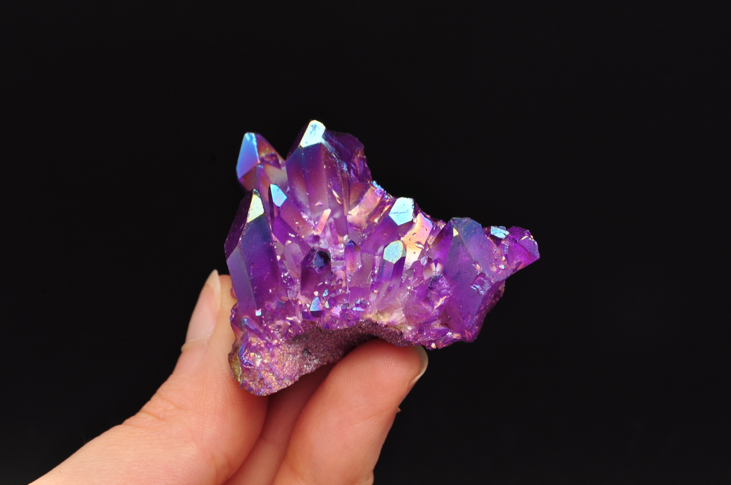 Натуральний гірський кристал - фіолетова аура, фіолетовий кварц. Кольорові, покриті металевими частинками. Прекрасний блиск, ідеально підходить для колекції, прикраси та подарунка.