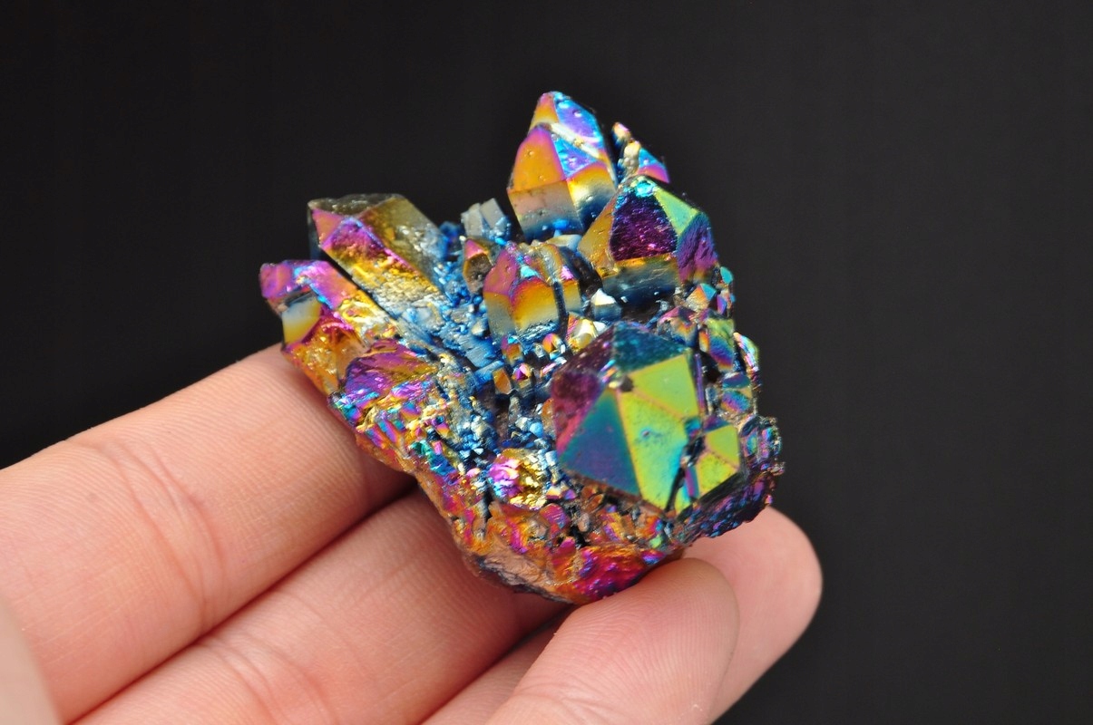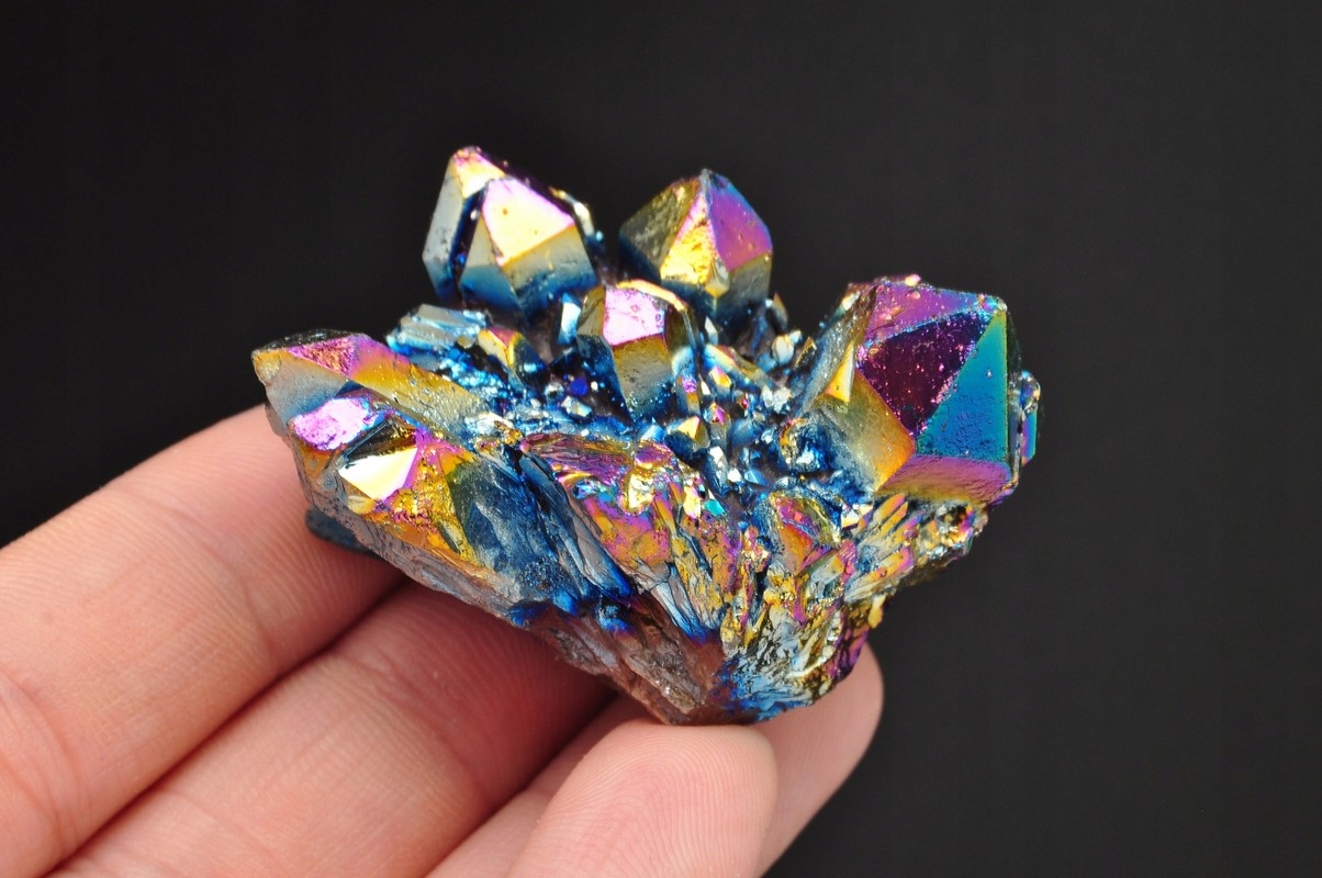 Натуральний гірський кристал - аура титану, титановий кварц. Кольорові, покриті металевими частинками. Прекрасний блиск, ідеально підходить для колекції, прикраси та подарунка.