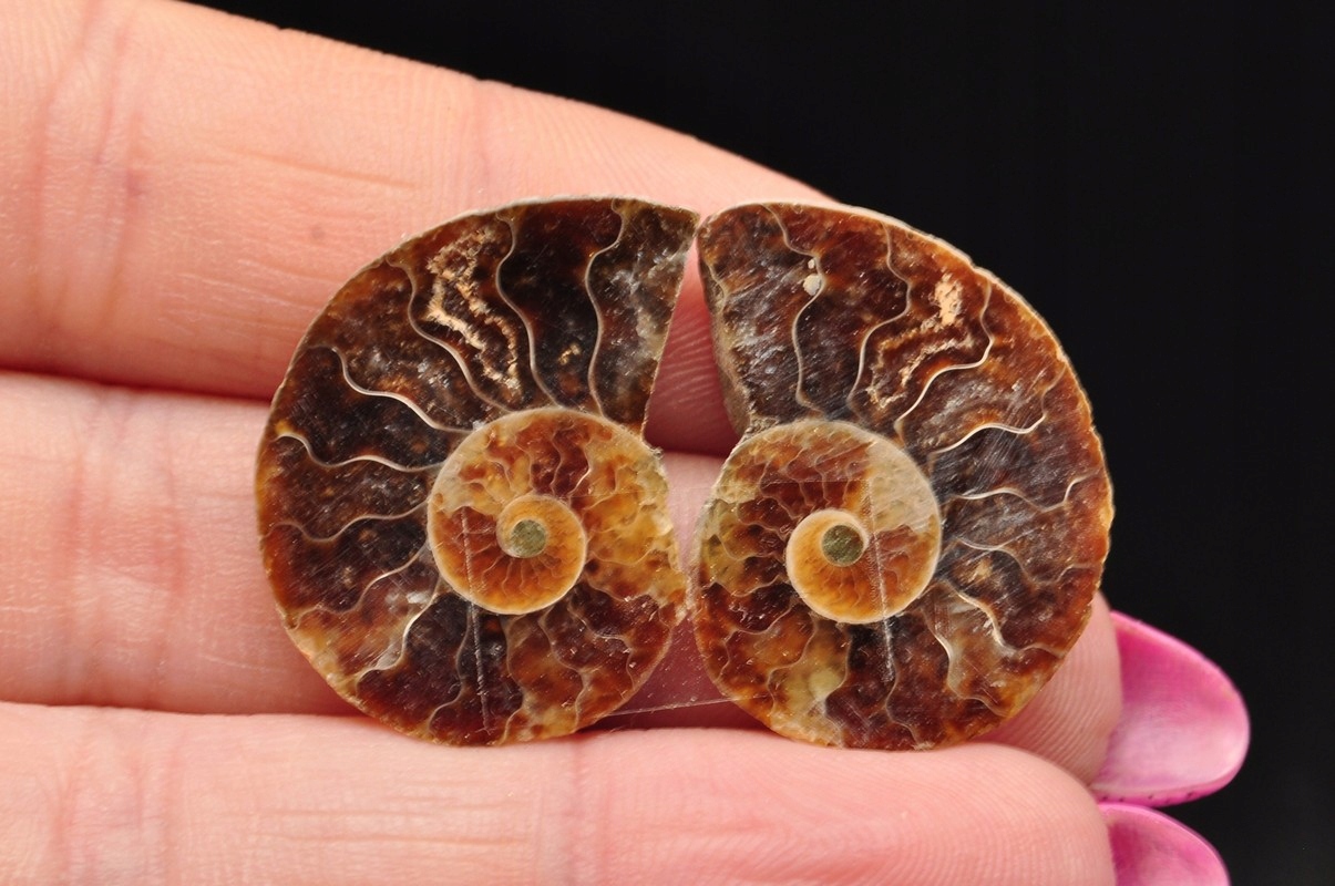 амоніт - натуральний набір, добре збережений. Копалини з Мадагаскара, датований крейдовим періодом. Унікальний зразок вирізання та відшліфованого в односторонньому порядку. 4 1,9 х 2,7 х 0,4 см