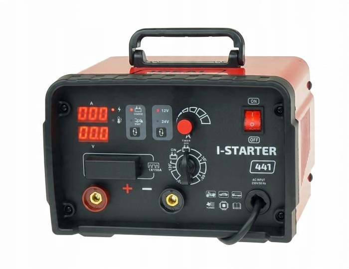 I-STARTER 441 — інверторний випрямляч для зарядки свинцево-кислотних акумуляторів на 12 і 24 В, з функцією запуску автомобілів з бензиновими та дизельними двигунами.