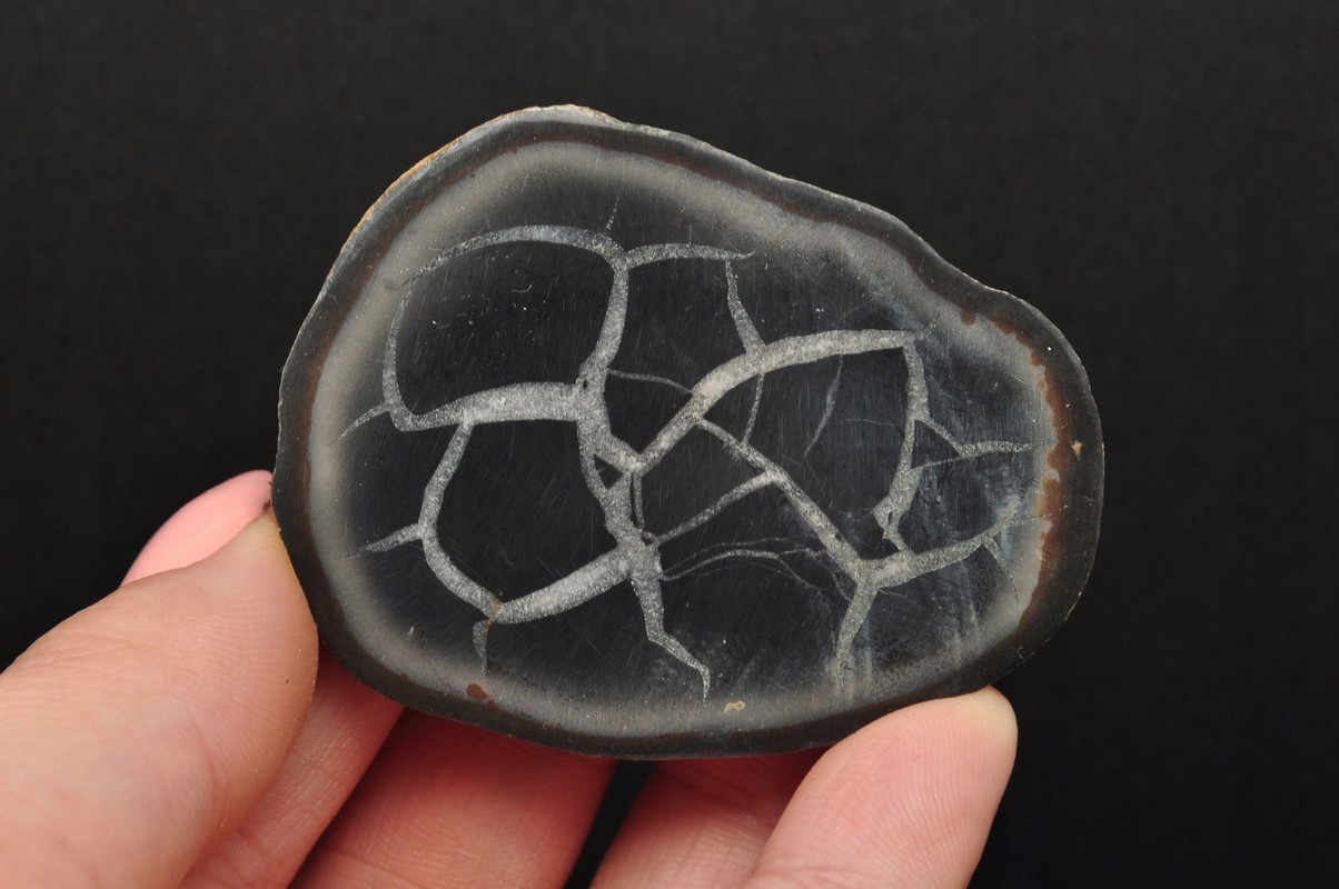 натуральний septaria, також називається драконовим каменем. Проданий зразок був відшліфований в односторонньому порядку. Ідеально підходить для колекції, прикраси або як подарунок.