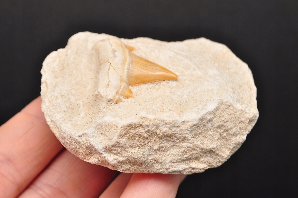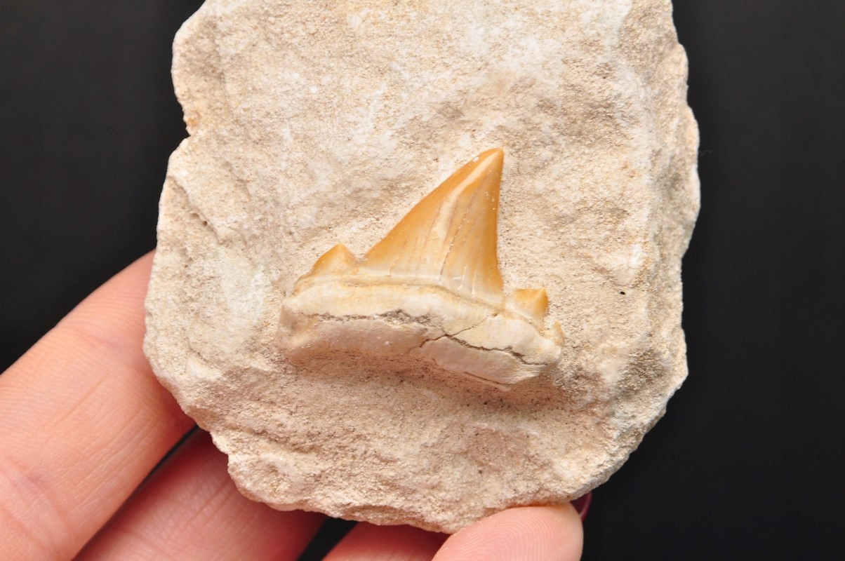 натуральний, скам'янілий зуб акули у батьківській скелі, дуже добре збережена, чудова якість, ідеально підходить для колекції.