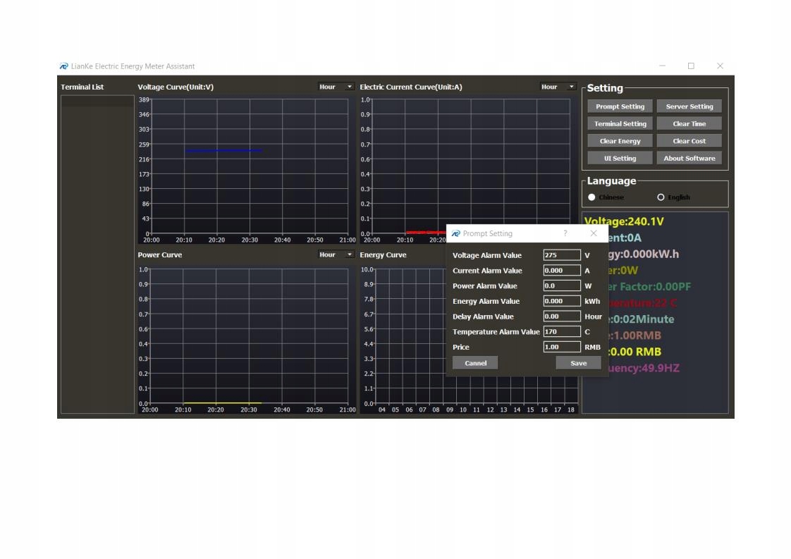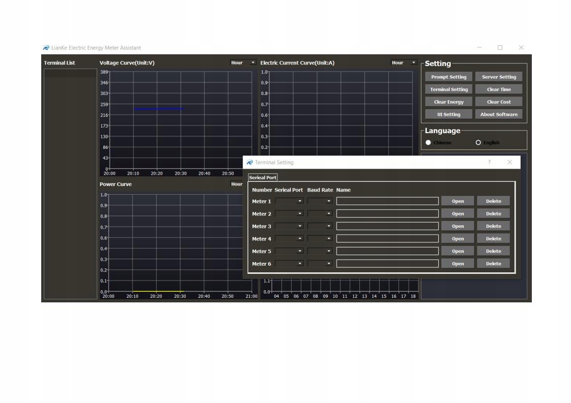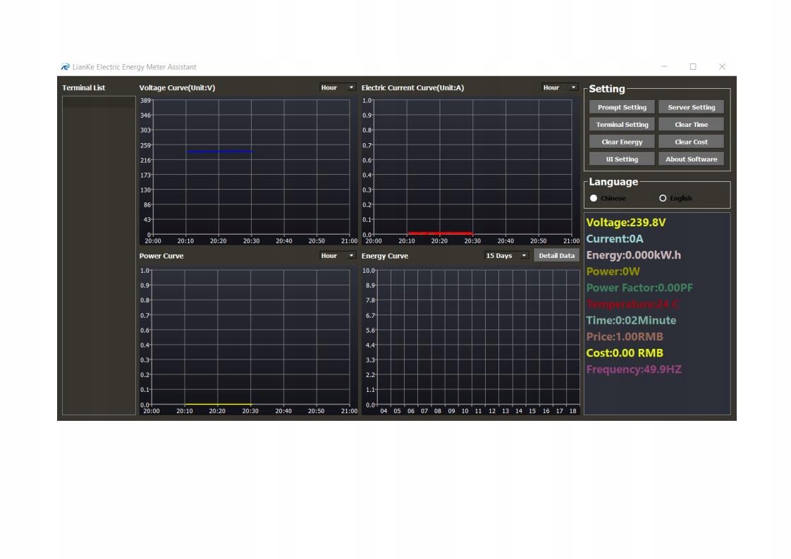 Великою перевагою пристрою є інтерфейс RS-485 та програма ПК для моніторингу та реєстрації 1-фазових мережевих параметрів у вигляді діаграм або таблиць. Ми надсилаємо програму електронною поштою. В одній програмі ви можете підключитися до 6 пристроїв. Ми позначимо недорогий і перевірений перетворювач RS-485/USB на десяток або близько того з іншого аукціону Allegro для підключення лічильника до ПК.