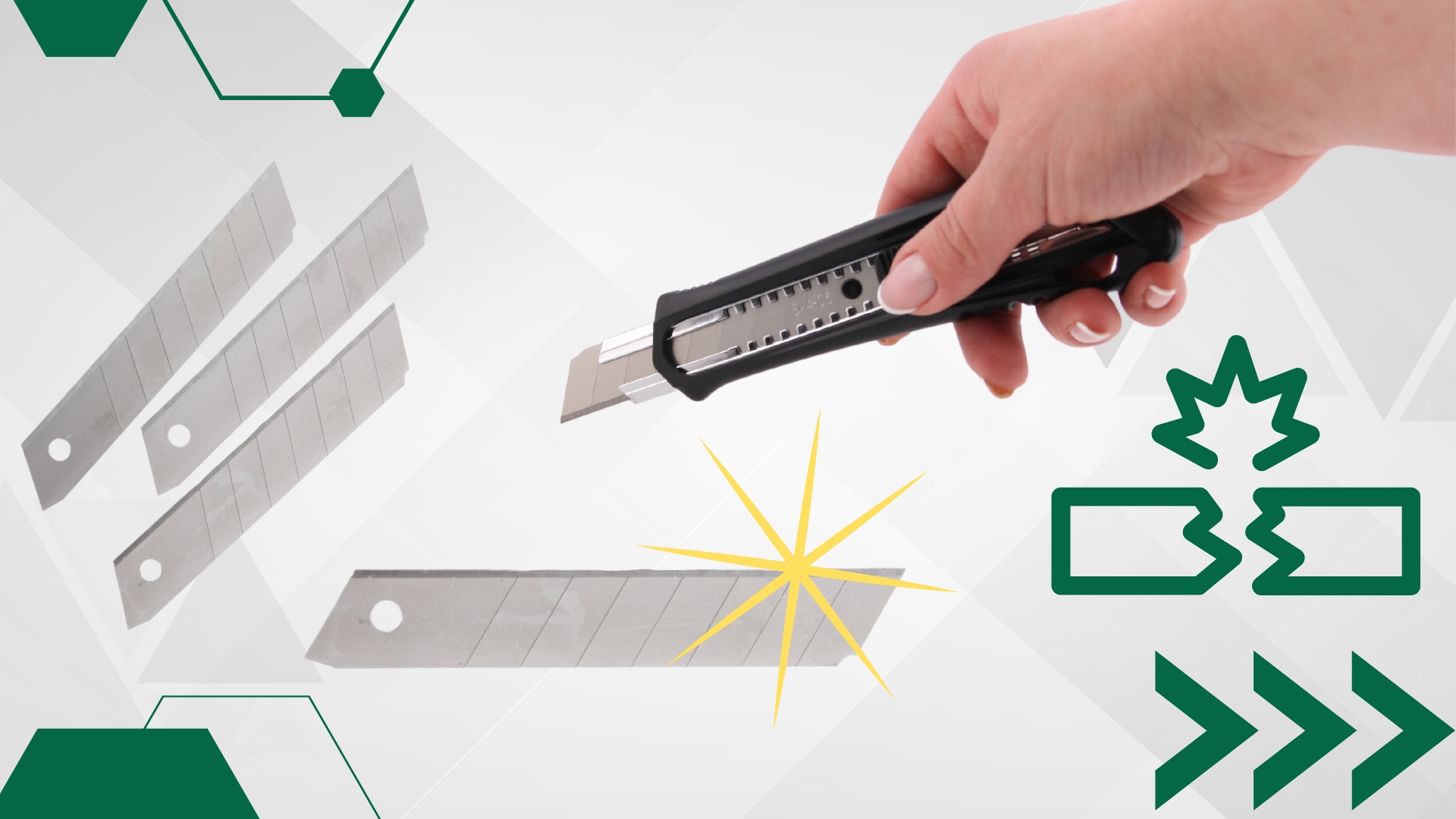 ➡ Нож зі зламаним лезом + 10 пакетів зламаних лез 18 мм - 100 штук