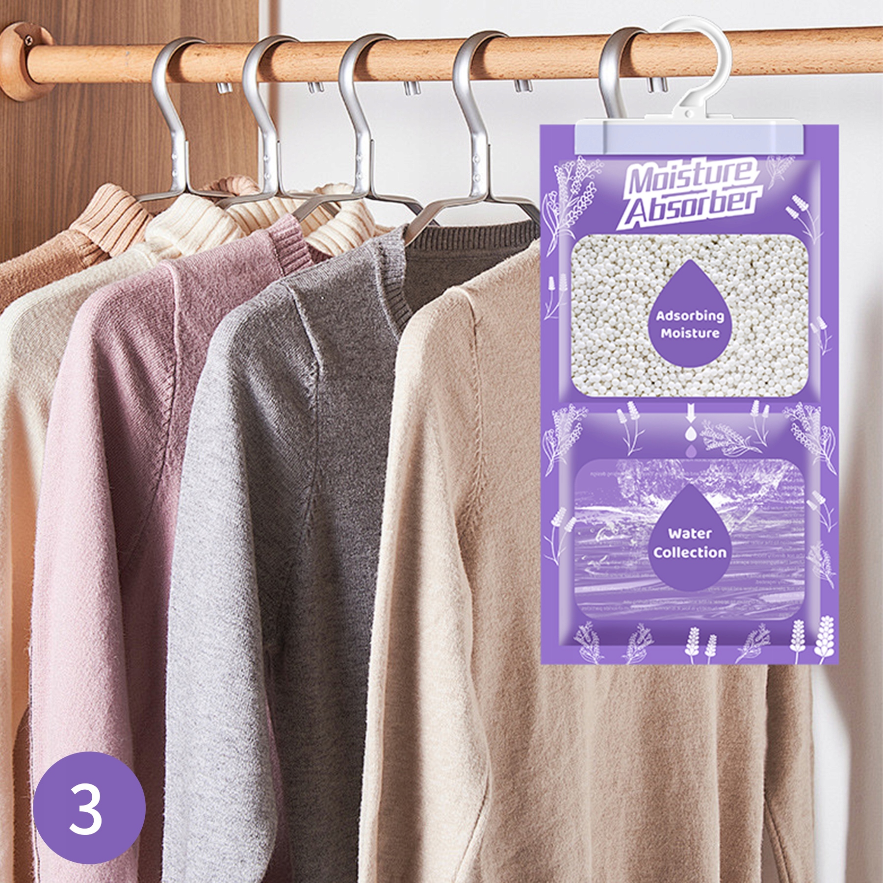 Ці шафи -кущі поглинають вологу завдяки фізичному ефекту сушіння, не завдаючи шкоди користувачам та навколишньому середовищу. Індивідуальна упаковка для кожного підвісного мішка вологи, ви можете легко повісити нову, коли колективний мішок заповнений.
