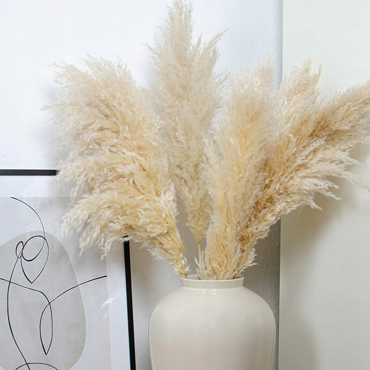 Ви можете використовувати невеликі шматочки сушеної трави Pampas і висушити їх на сонці, поки вони не стануть більш інтенсивним виглядом. Прикраси сушених квітів матимуть яскравий вигляд, не впливаючи на остаточний вигляд. Ви також можете використовувати лак для волосся для виправлення квітів з травами. Висушені квіти з трави Pampas можуть зайняти тривалий час, ви можете заощадити час, не потребують поливу, набір ваз із травою Pampas (не входить) дуже красивий.