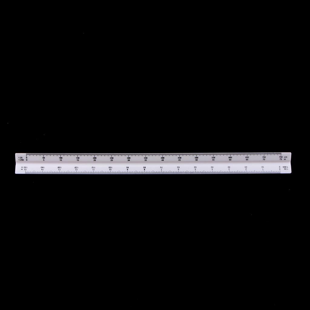 Трикутна архітектурна шкала розміром 30 см/12 дюймів, призначена для полегшення малювання та вимірювання архітектурних креслень, таких як плани поверхів, сині відбитки та ортографічні проекції.