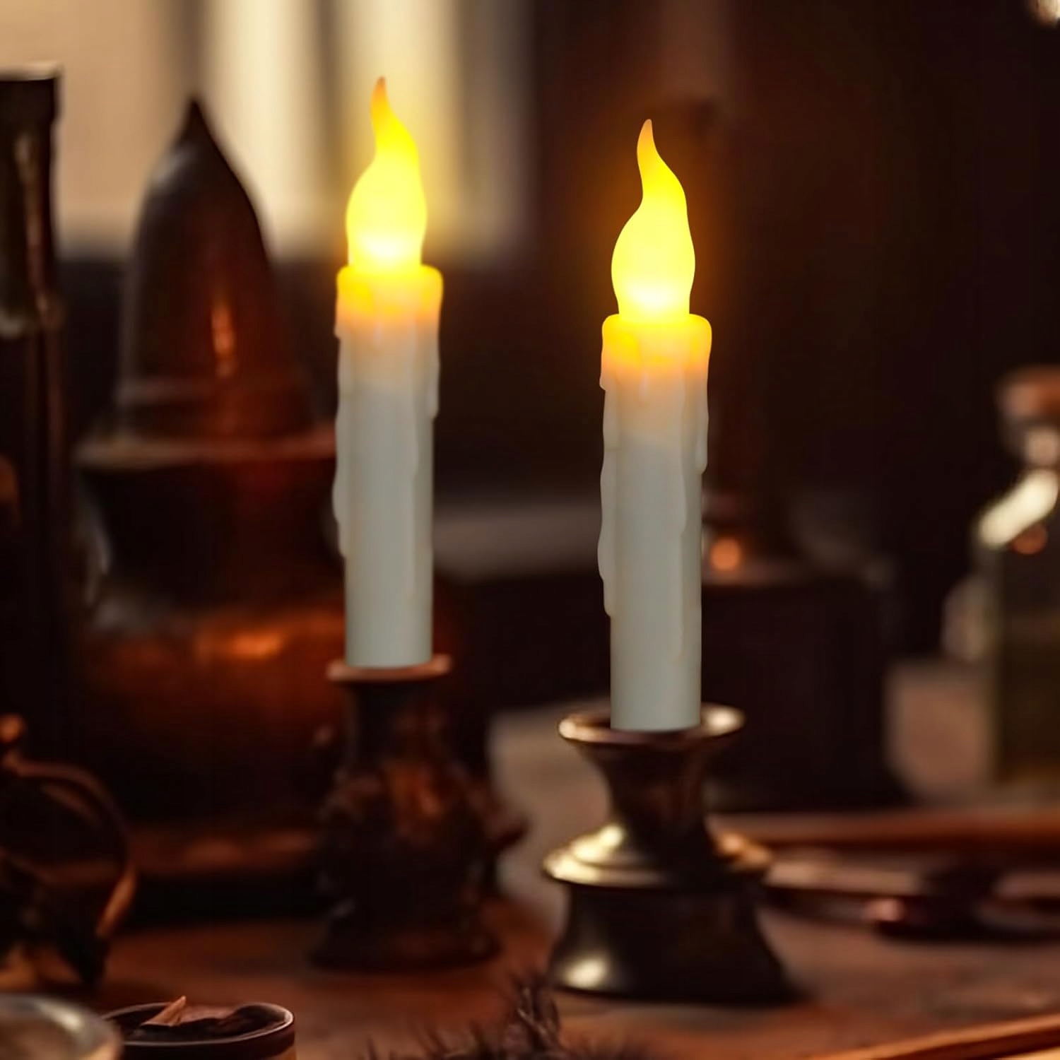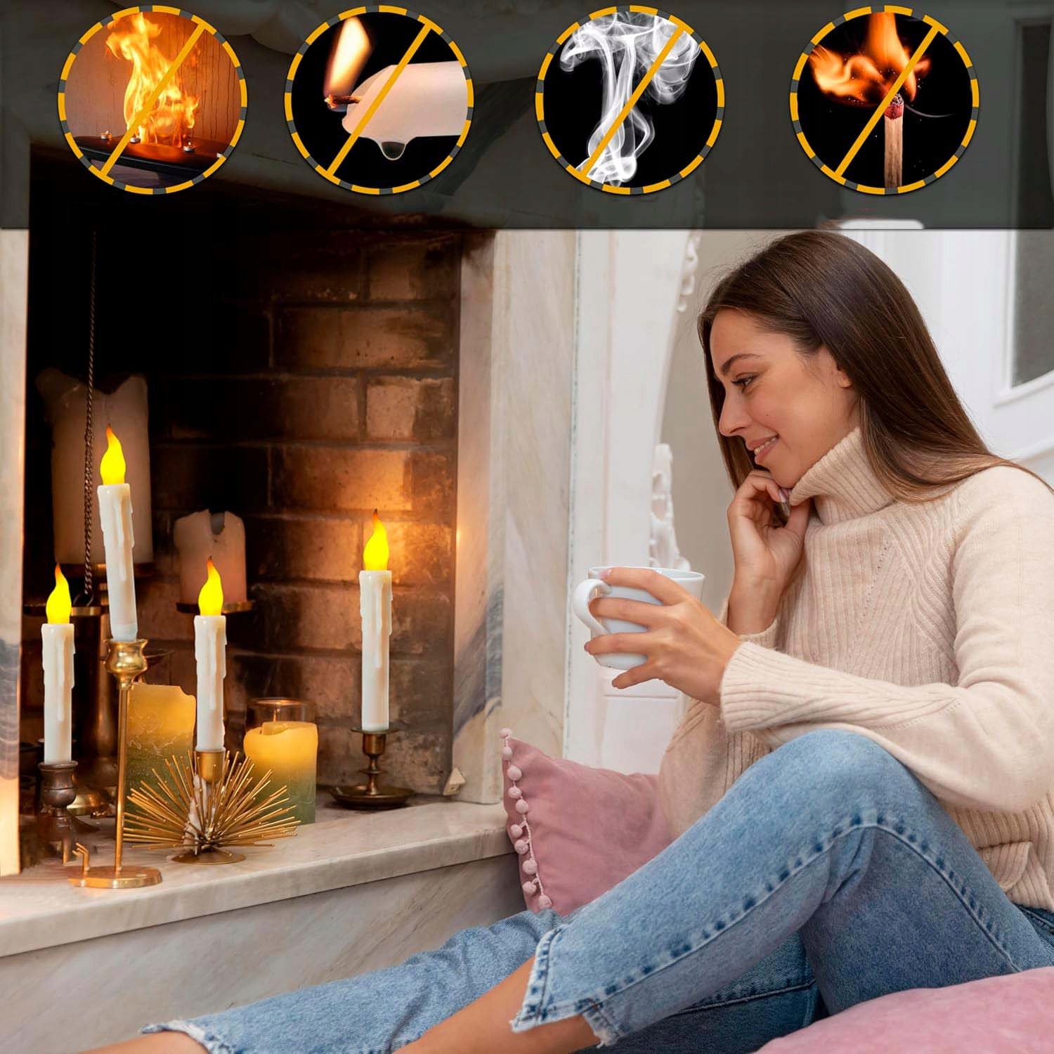 🌈🌈🌈[Створення теплої атмосфери] Ці мерехтливі свічки без полум’я випромінюють яскраве, тепле жовте світіння, як справжня свічка, створюючи теплу та романтичну атмосферу. Делікатне мерехтіння імітує традиційний ефект горіння справжньої свічки, створюючи реалістичні відчуття. Більше того, вони без вогню та диму, що робить їх безпечними в будинках із домашніми тваринами чи маленькими дітьми.
