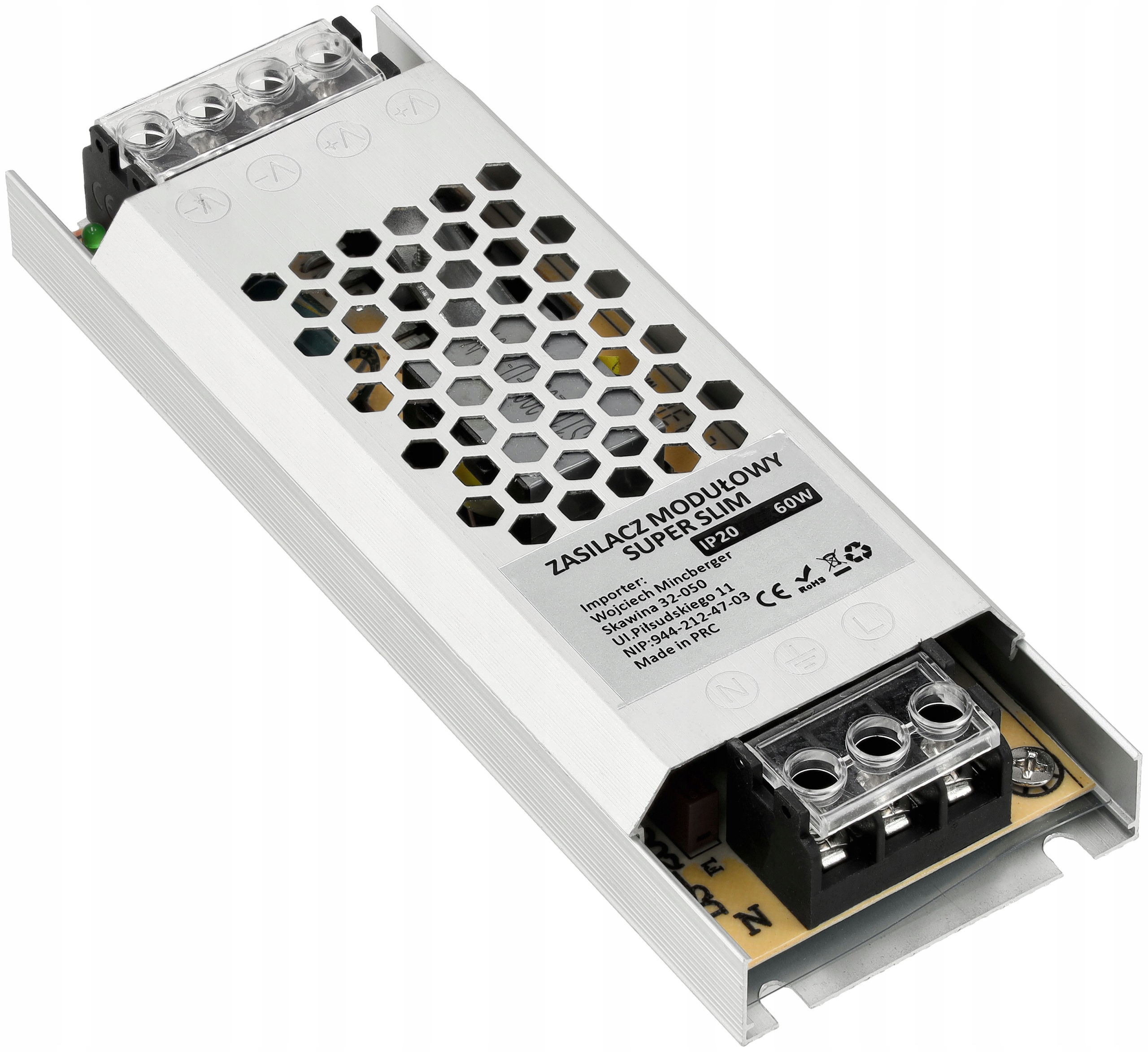 Світлодіодне джерело живлення 12 В 60 Вт Super Slim 5a IP20 -це високоякісний модульний трансформатор, призначений для подачі 12В світлодіодних стрічок. Світлодіодні стрічки в середніх проектах, таких як декоративне освітлення або підсвічування.