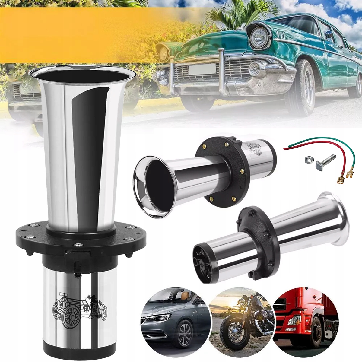12 V старовинний ріг, ретро -вінтажний хромований ріг