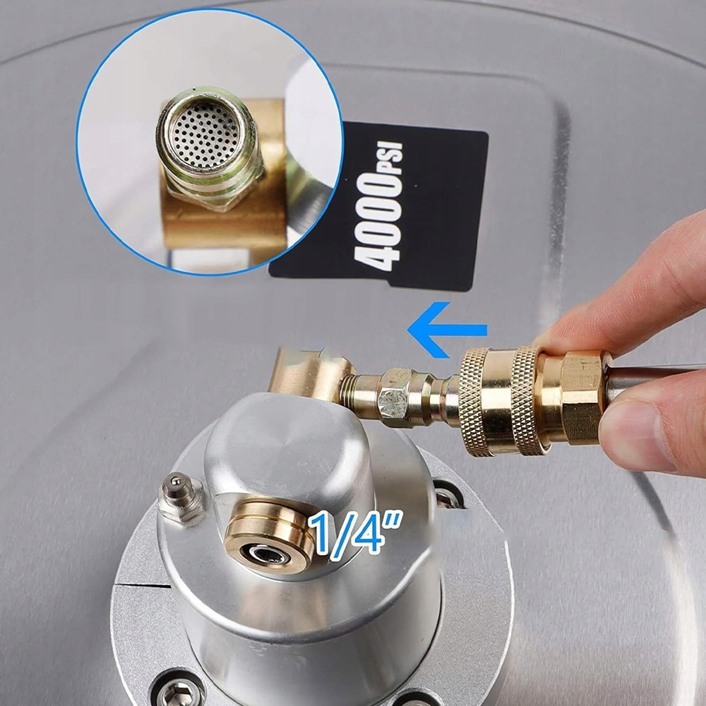 Пост 1/4 дюйма можна легко підключити до прикріпленого стрижня для шайби тиску. Вхід обладнаний фільтром, щоб запобігти його засміченню домішок. Оснащений 4 великими колесами, легкими для переміщення.