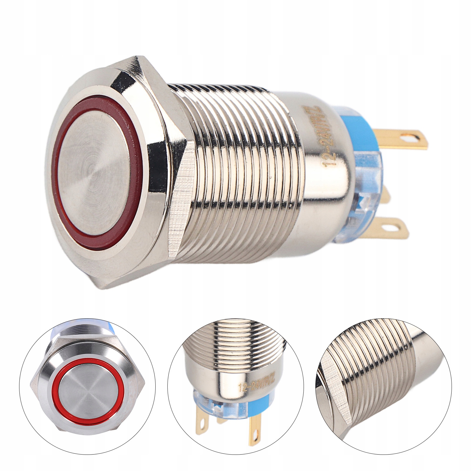 19 мм 12-24В водонепроникний нержавіючий самостійний вимикач для списку натиснуто на червоний світлодіод