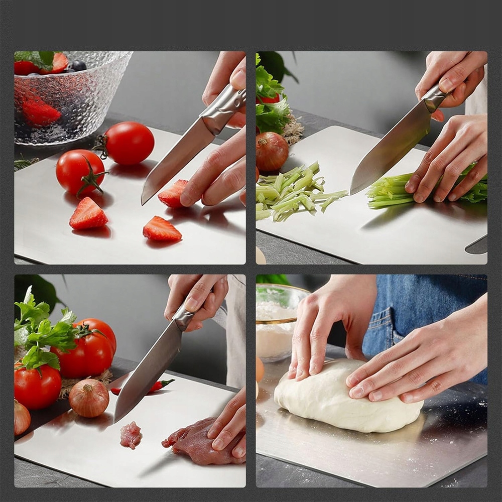Ця дошка для подрібнення нержавіючої сталі ідеально підходить для різних завдань для приготування їжі. Незалежно від того, чи ви розкачаєте тісто, замішують хліб чи нарізки фруктів, овочів та хліба, наша дошка для рубання титану виконає кожне завдання.