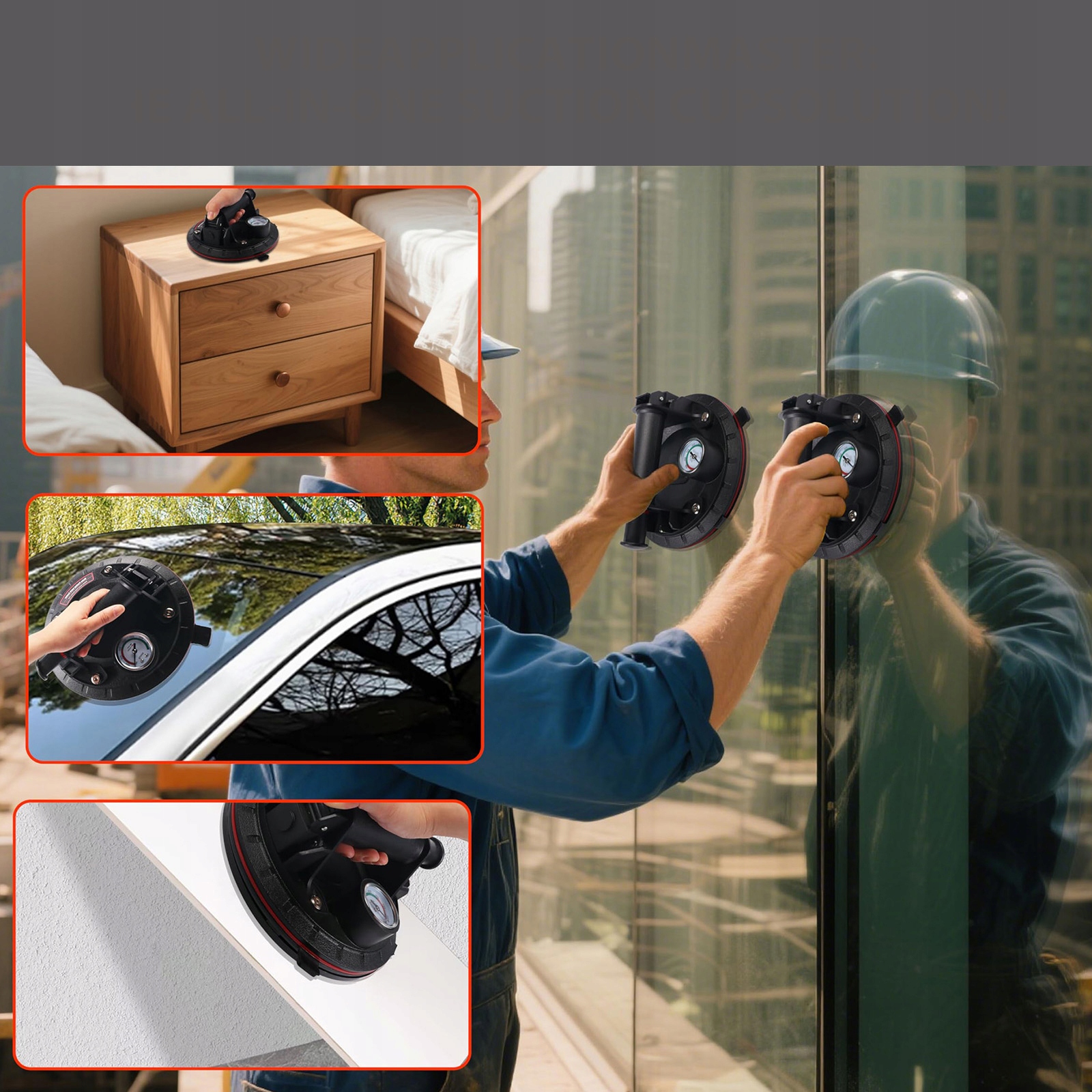 - Він має високу силу відсмоктування та підйомів 200 кг, що економить роботу, збільшує продуктивність та полегшує передачу матеріалів. Він швидко дотримується плоских, чистих, гладких та непільгримських поверхонь і легко розібрати. Лише кілька ударів, щоб зробити присоску повністю чіплятися на поверхню і підтримувати силу смоктання понад 12 годин.