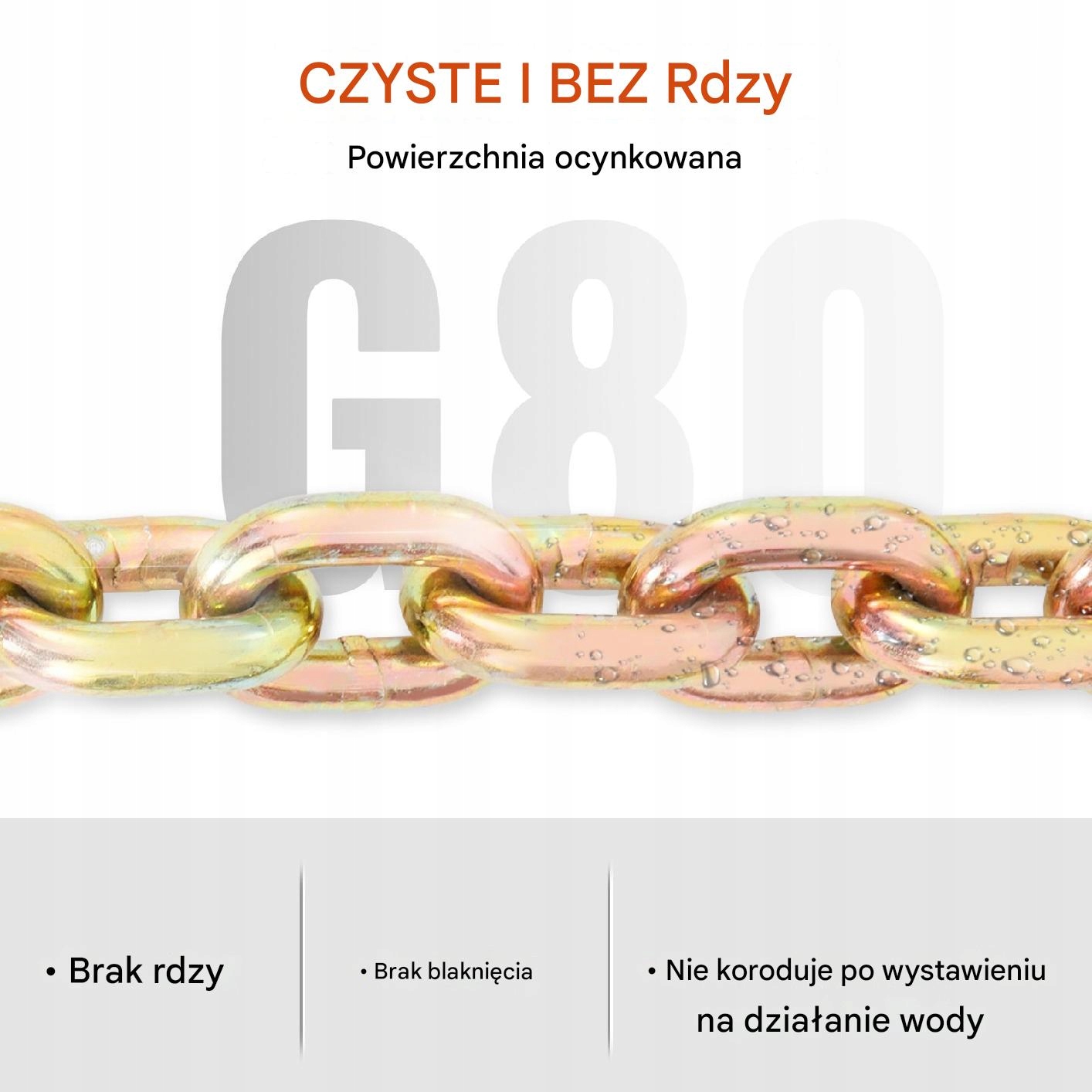 Ланцюжок виготовлений з марганцевої сталі G80, дотримуючись вимог. Закриття ланцюга Vevor за допомогою видимого маркування класу "G = 80".