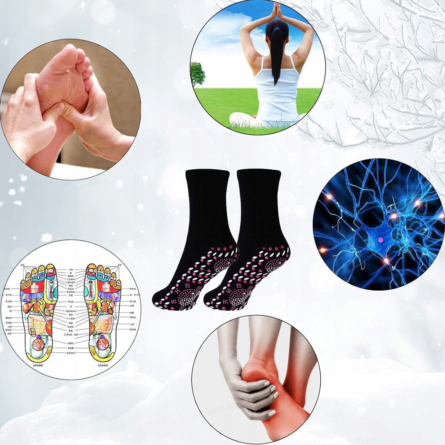 Природні гарячі точки на дні шкарпеток стимулюють акупунти стопи для досягнення впливу масажу, заспокоюючи ефект крові.