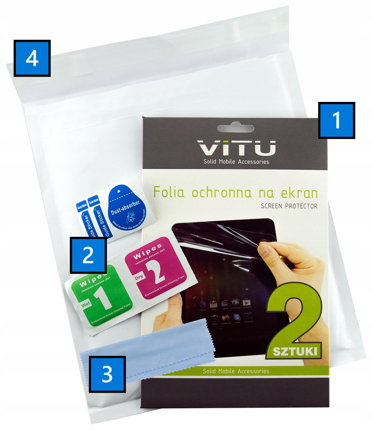 1️⃣ Набір із 2 захисних плівок VITU в оригінальній фірмовій упаковці.