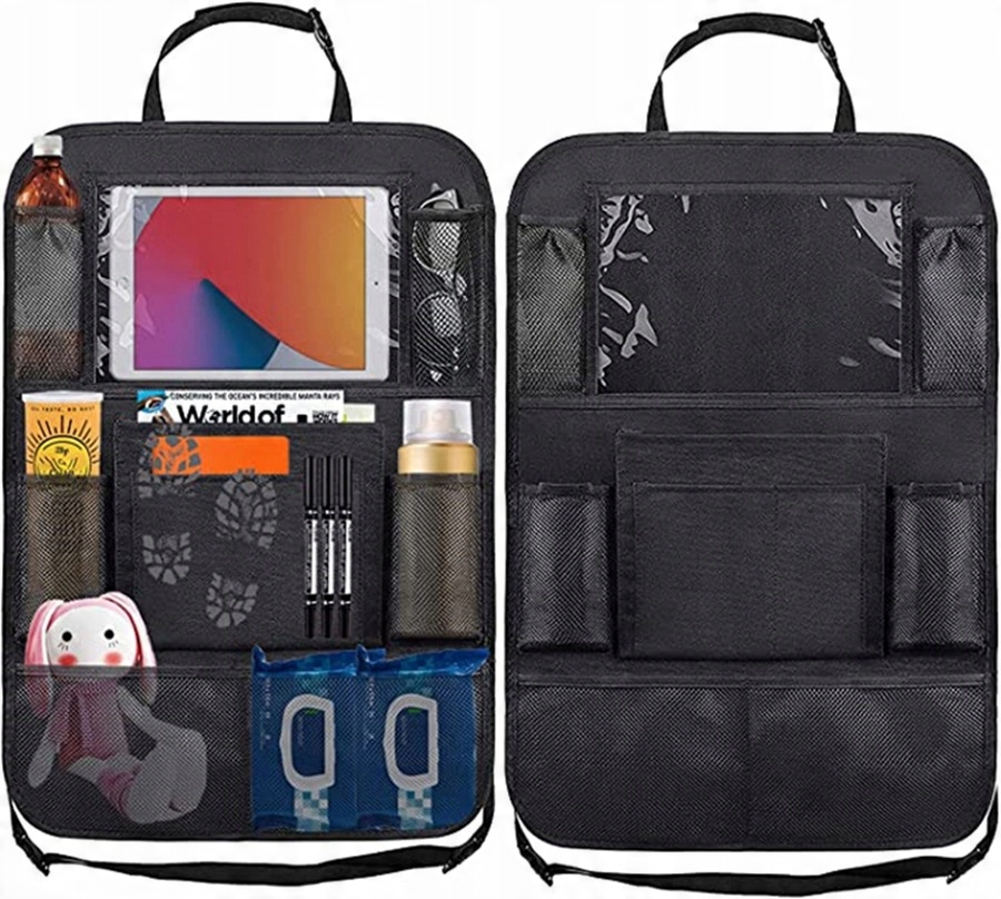 ✔ Велика кількість кишень - Кожен організатор має 10 кишень , включаючи 6 кишень з сітками та 4 закриті , які вмістить різні аксесуари - від пляшок, закусок, іграшок, до більших предметів, таких як книги або документи. ✔ Спеціальна кишеня для планшета - Запропонована кишеня з розмірами 25x17 см з прозорим переднім часом дозволяє використовувати планшет під час подорожі, що забезпечує розваги до пасажирів. B> ✔ Міцний пластик - Організатори виготовлені з матеріального, стійкого до бруду та пошкодження, що гарантує тривалий термін експлуатації. > 60x40 см, що організатори ідеально відповідають задній частині сидінь, не займаючи занадто багато місця, забезпечуючи при цьому багато місця для зберігання.