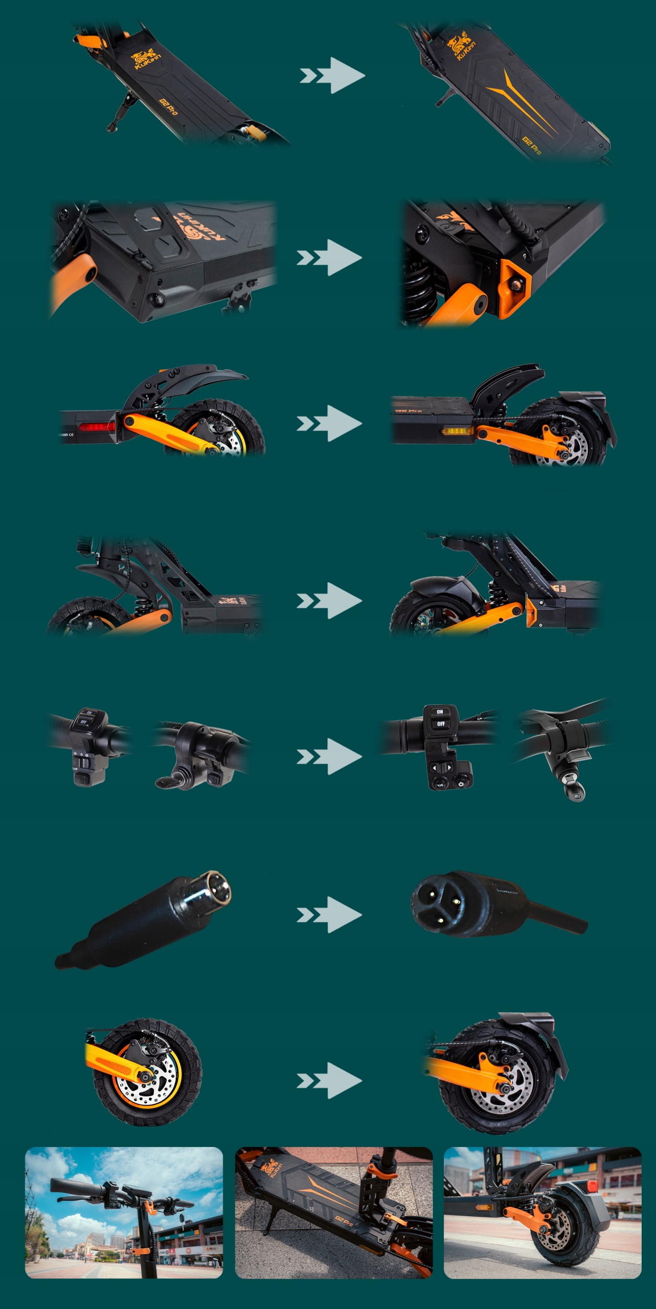- 1. Стиль педалі та зовнішній вигляд рук -рук були змінені, завдяки якому тіло автомобіля є більш модним і красивим. Змініть спрямовані світильники на жовтий, відповідно до вмісту ЄС. Передні та задні крила складаються з мети енергоефективності та більш прохолодного вигляду. Перелічіть передні та задні шини розпилення з вакуумними шинами, щоб забезпечити шину та безпеку. Деталі змінилися, такі як складання пристроїв, порти обвинувачення, підозрілі та ін.