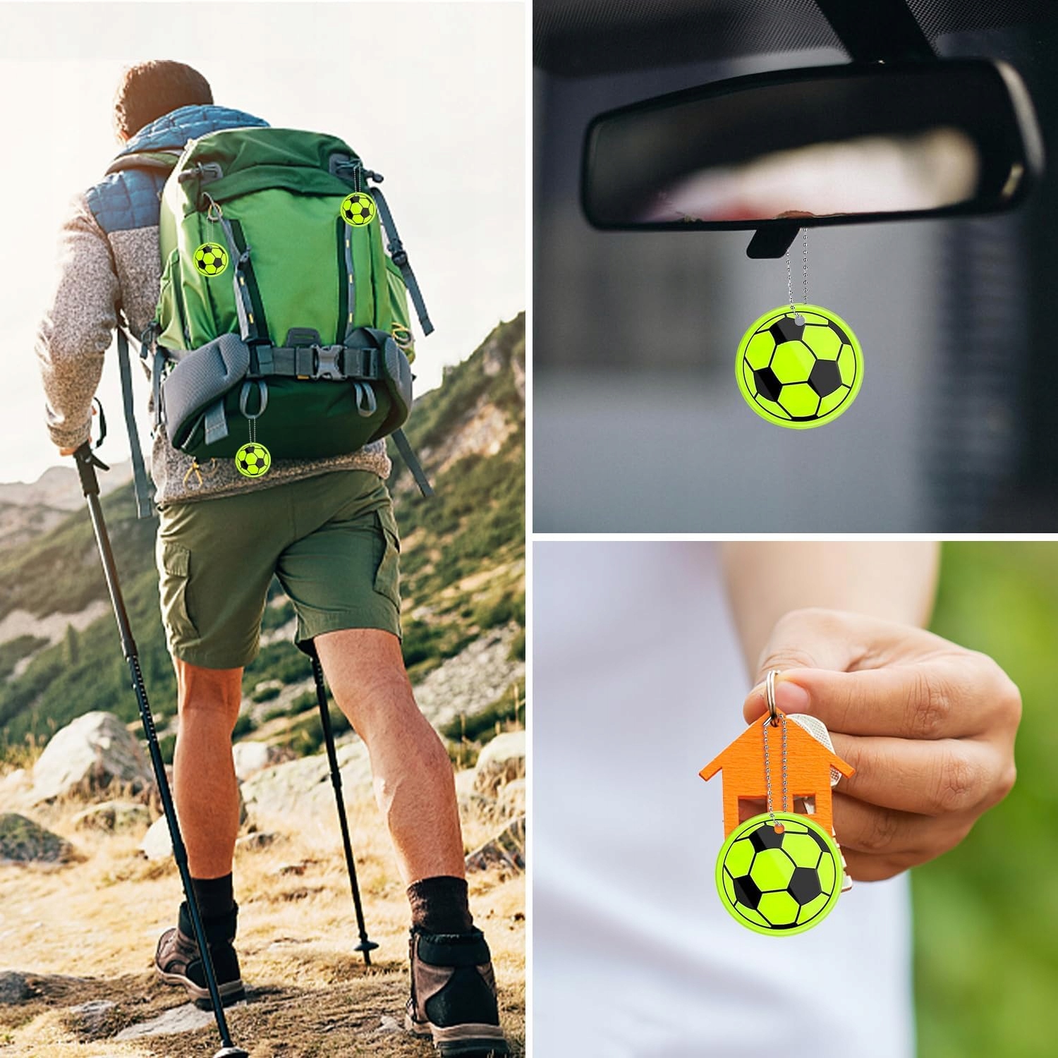 Світловідбиваючі підвіски у формі футбольного м’яча – це функціональні та стильні аксесуари, які підвищують безпеку дітей і додають характеру їхнім рюкзакам чи ключам. Елементи, що світяться в темряві, забезпечують видимість і полегшують місцезнаходження в умовах поганого освітлення.