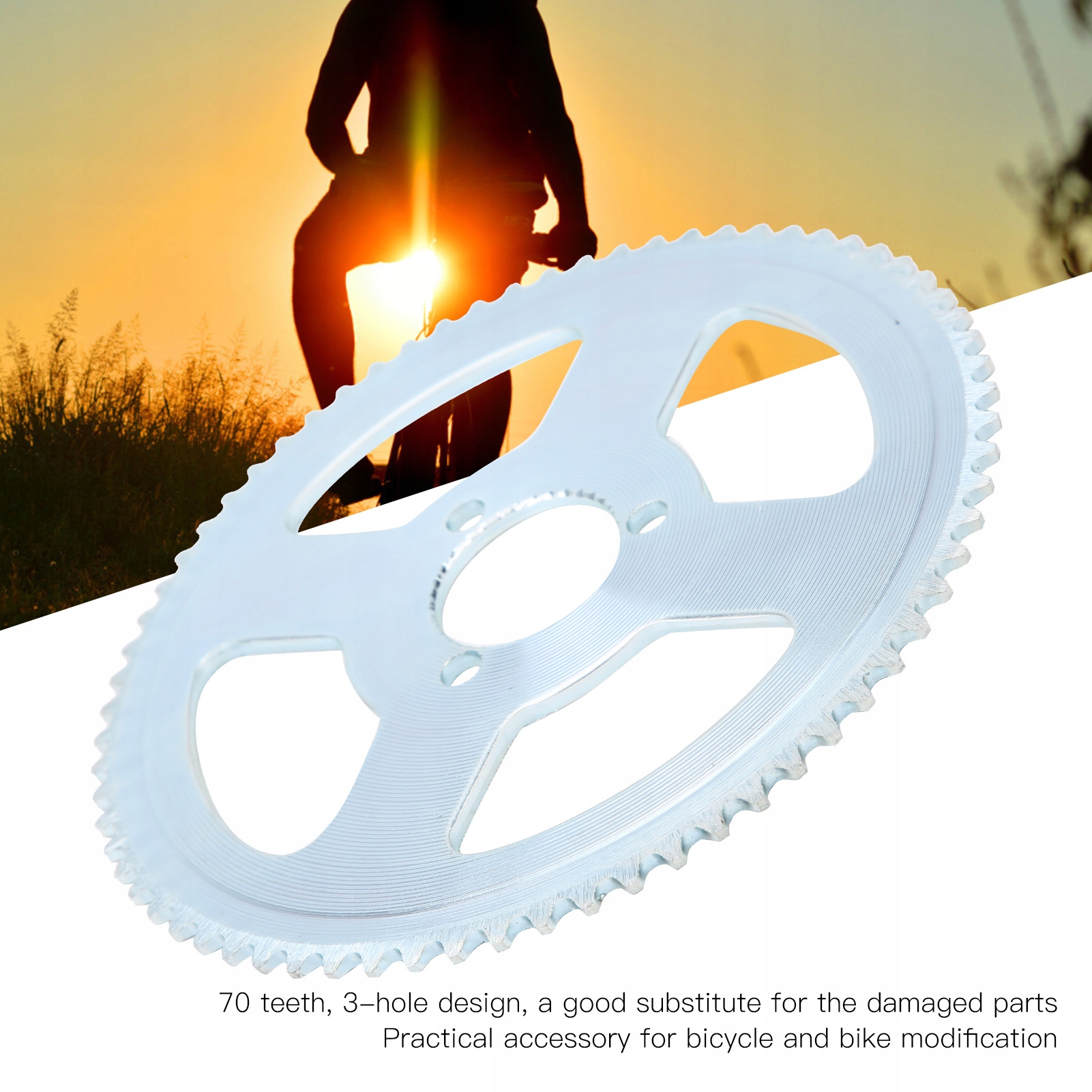 1. Використання сталі високої твердості, міцної та довговічної, зносостійкої. 2,70 зубів, конструкція з 3 отворами, проста в установці та заміні старих або зламаних деталей. 3. Це ідеальний аксесуар для модифікації велосипеда зі стабільною та надійною роботою. 4. Висока міцність, ефективно покращує ефективність велосипедного спорядження. 5. Виготовлено відповідно до суворих стандартів якості, що є практичним у використанні.
