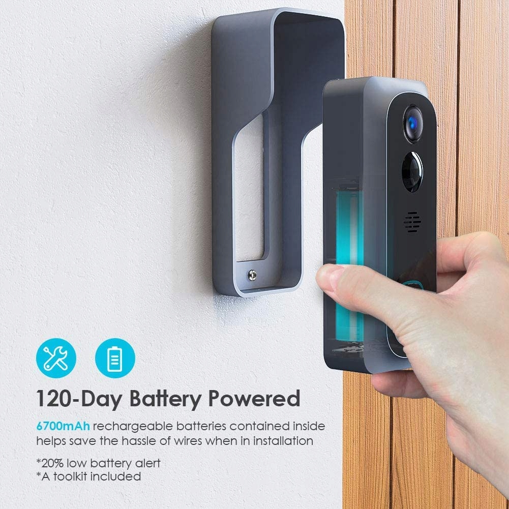 Безкоштовне 7-денне хмарне сховище, відеодомофон із двома батареями 18650 (включно з великою ємністю 5600 мАг) нормально працювати в режимі очікування близько 6 місяців; За допомогою програми "Cloudedge" ви можете знати відсоток заряду акумулятора та отримувати сповіщення про низький рівень заряду на 20%, коли вам потрібно зарядити. (Порада: повністю зарядіть акумулятор під час першого використання).
