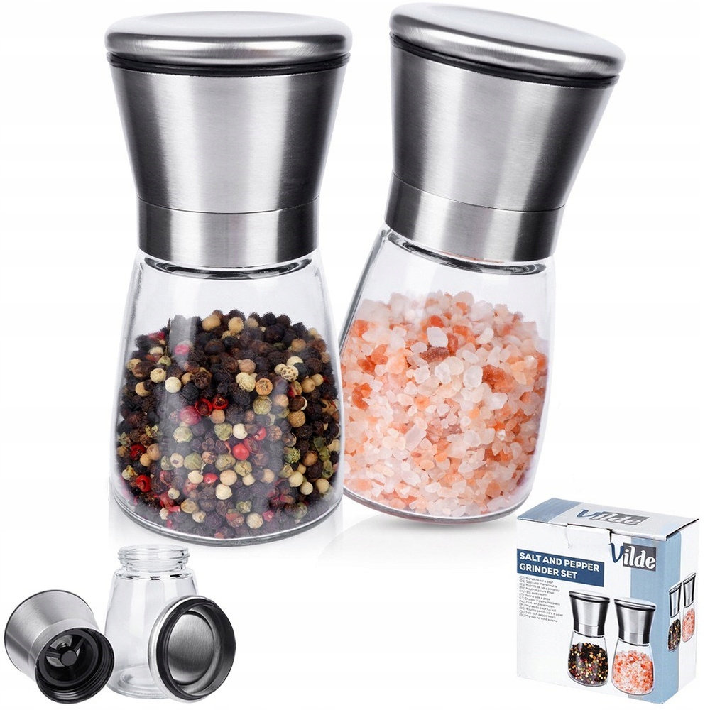 Набір, що складається з двох ручних млинків, ідеально підходить для перцю та солі. Необхідний набір на кожній кухні. М'ясорубка дозволить правильно подрібнити сіль або перець, а також інші спеції. Подрібнення безпосередньо перед подачею зберігає свіжість і вивільняє аромат спецій. Завдяки прозорій формі м'ясорубки добре поєднуються з іншим посудом. Вони ідеально підходять для закладів громадського харчування. Ручні м’ясорубки завжди є перевіреною ідеєю подарунка, напр. на новосілля. Набір повністю безпечний для здоров'я і харчово нейтральний.