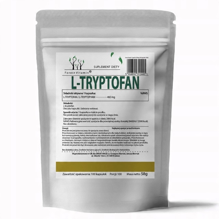 2x лісовий вітамін L-триптофан триптофан 460 мг 100 шапки хороший стрес