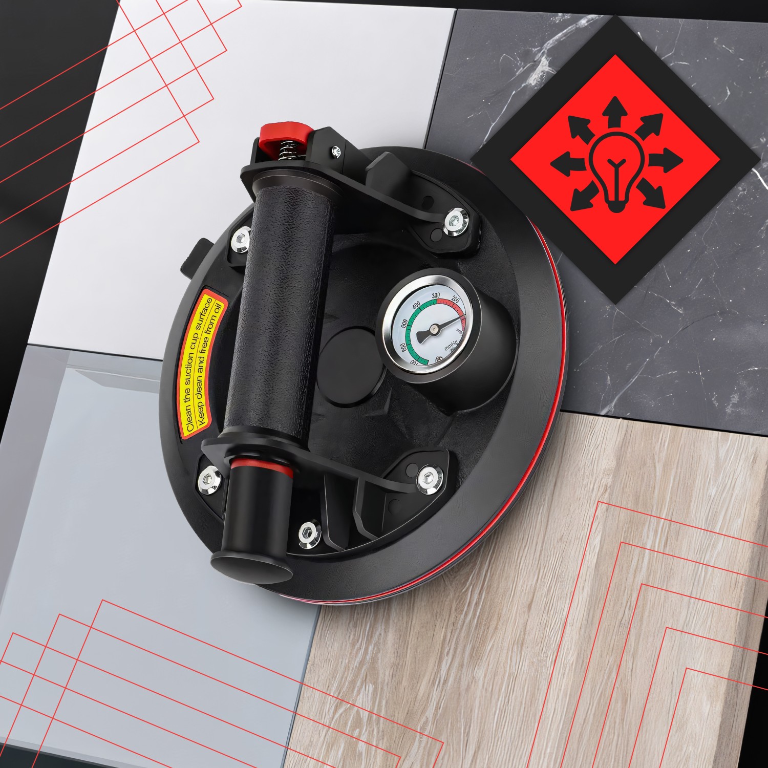 присосна чашка для плитки, глазурі та скла з насосом і манометр забезпечує максимальну безпеку при роботі з важкими предметами, такими як скло або плитка.