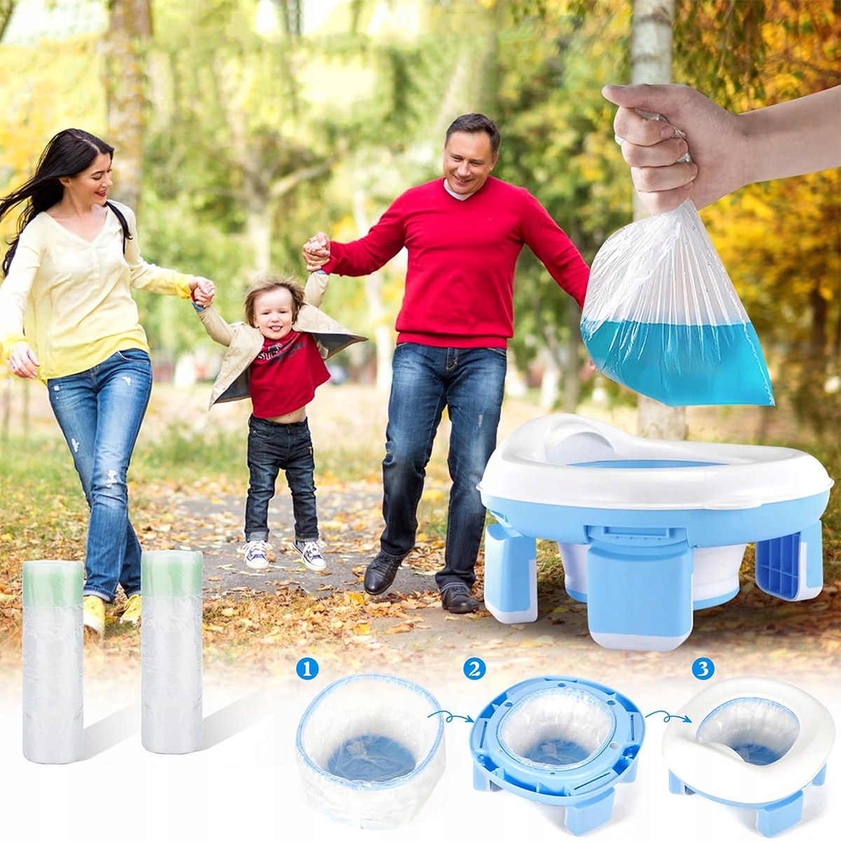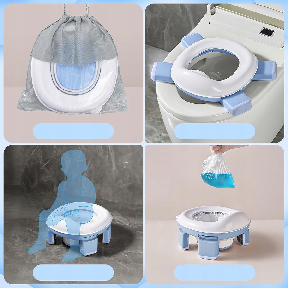 Потрі для дітей, 3-х 1 Подорожий горщик, складний горщик для дітей з 40 мішками для навчання використання горщика, не ковзаючого дизайну, немовлят (білий та синій) 1>