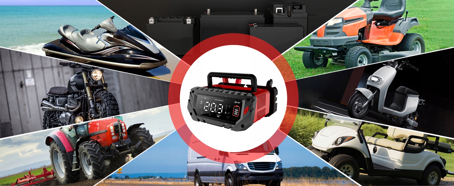 【Інтелектуальний автомобільний акумулятор】 Car Charger використовує 9-етапну автоматичну зарядку, включаючи розпізнавання акумуляторів, дебет, технічне обслуговування, технічне обслуговування тощо для досягнення найкращої та найефективнішої зарядки. Режим ремонту використовується для ремонту та активації старих і слабких батарей.