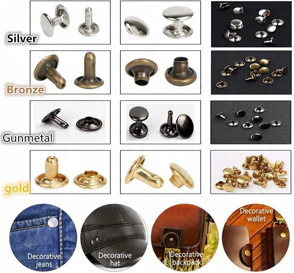 шкіряні заклепки: 6 x 6 мм, 8 х 8 мм і 8 х 12 мм