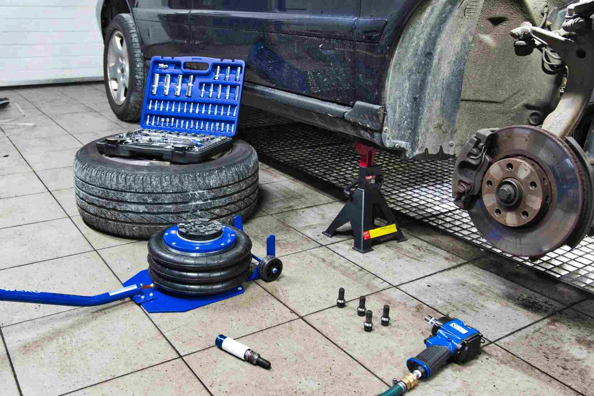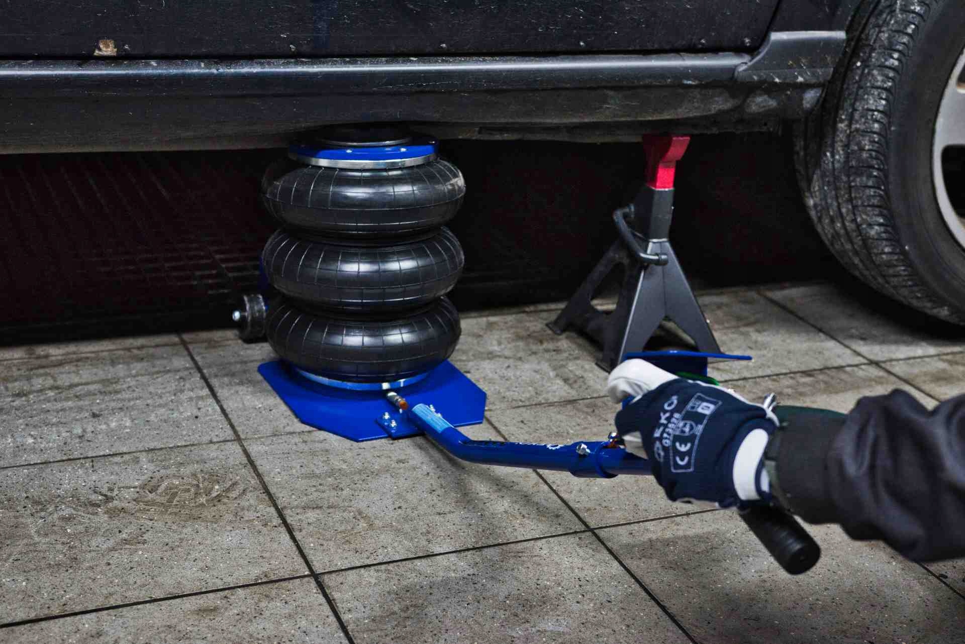 - У підйомник використовували два клапани: вхід і вихід; Завдяки цьому, після відключення джерела повітря, підйом не впаде автоматично.