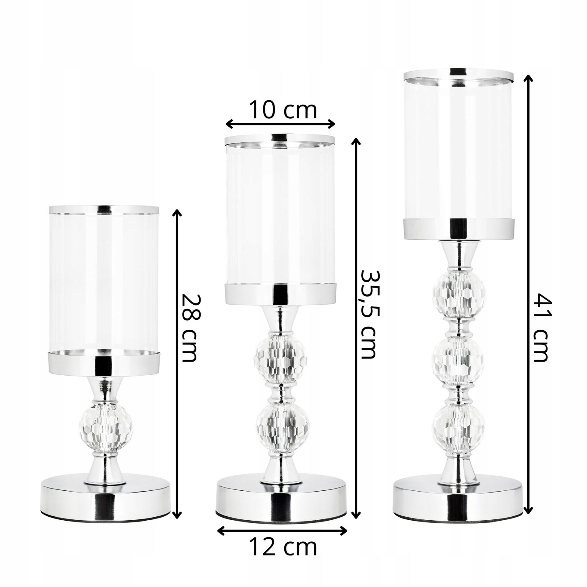3x НАБІР ПІДСТАВКИ ПІД СВІЧКИ НАБІР МЕТАЛЕВОЇ СКЛЯНОЇ ЛАМПИ СРІБНОГО ГЛАМУРУ