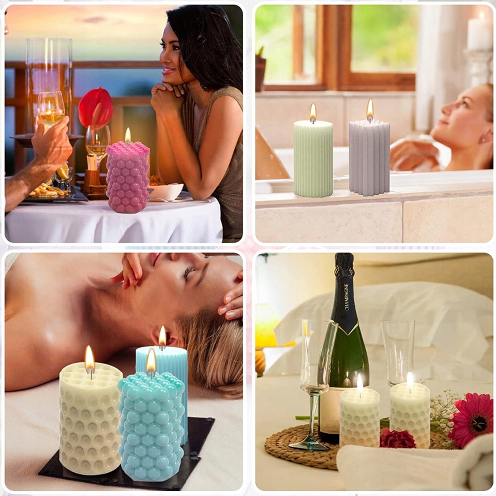 ✅ Свічки для свічок доступні в 4 стилях, циліндричній формі для свічок з смужками, прямокутною свічкою -форма свічок, циліндрична форма свічок у свічках У крапках шестикутна форма для свічок з крапками, різні стилі утворюють різні свічки. Силікон, наші силіконові форми на свічках багаторазово та гнучкі, стійкі до сльози, м’які, міцні, миюються з гладкою поверхнею і легко розбирають.