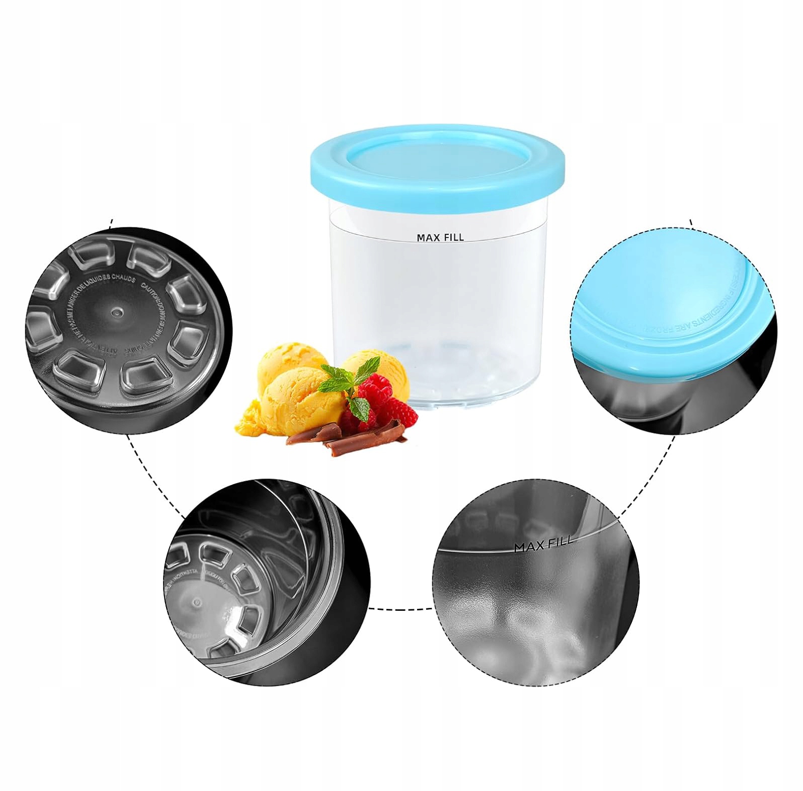 Поліпшені силіконові кришки можна безпечно прикріпити до кружки та ефективно захищати їх від пилу ззовні. У той же час запахи в холодильній камері ізолюються. Завдяки цьому заморожена їжа завжди залишається свіжою. Прозорий дизайн чашки та 4 кришки в різних кольорах полегшують ідентифікацію різних типів морозива.