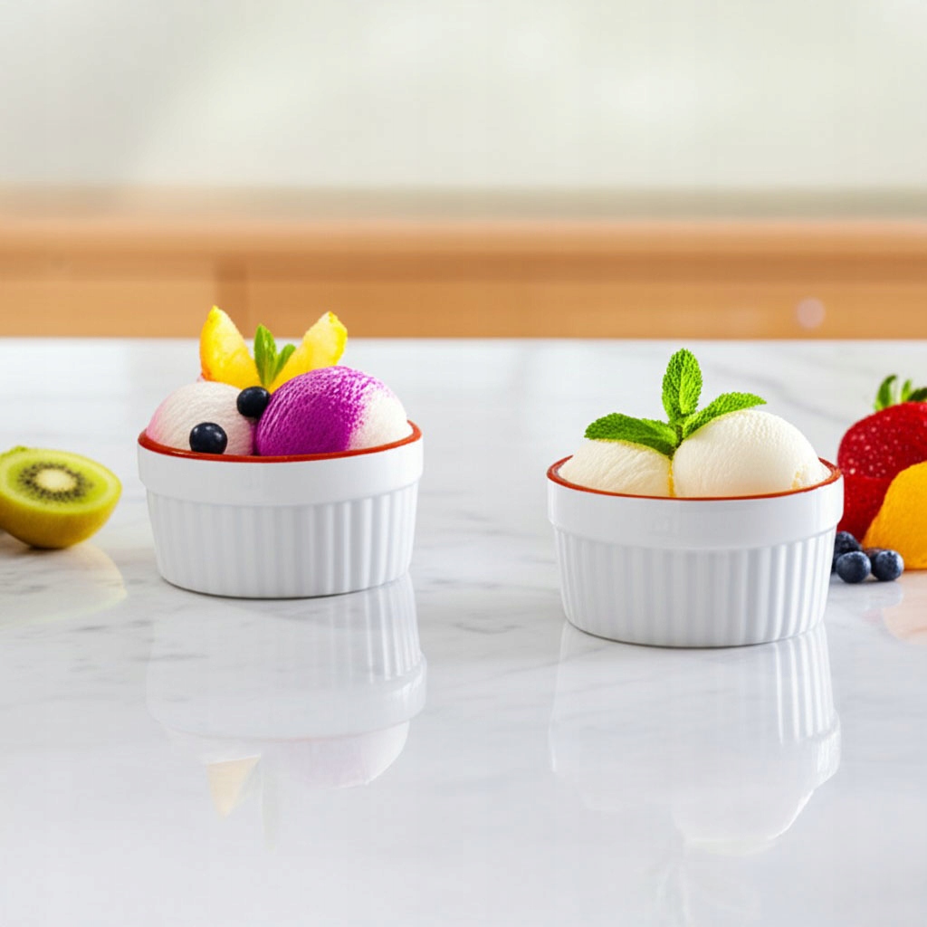 полум'я ідеально підходить для підготовки та подачі багато страв. Вони будуть ідеальними для суффлів, міні -запіканки, крему брюле і навіть початківців. З набором з 4 штук Ви можете легко приготувати страву для всієї родини або гостей, подаючи страви безпосередньо на столі.