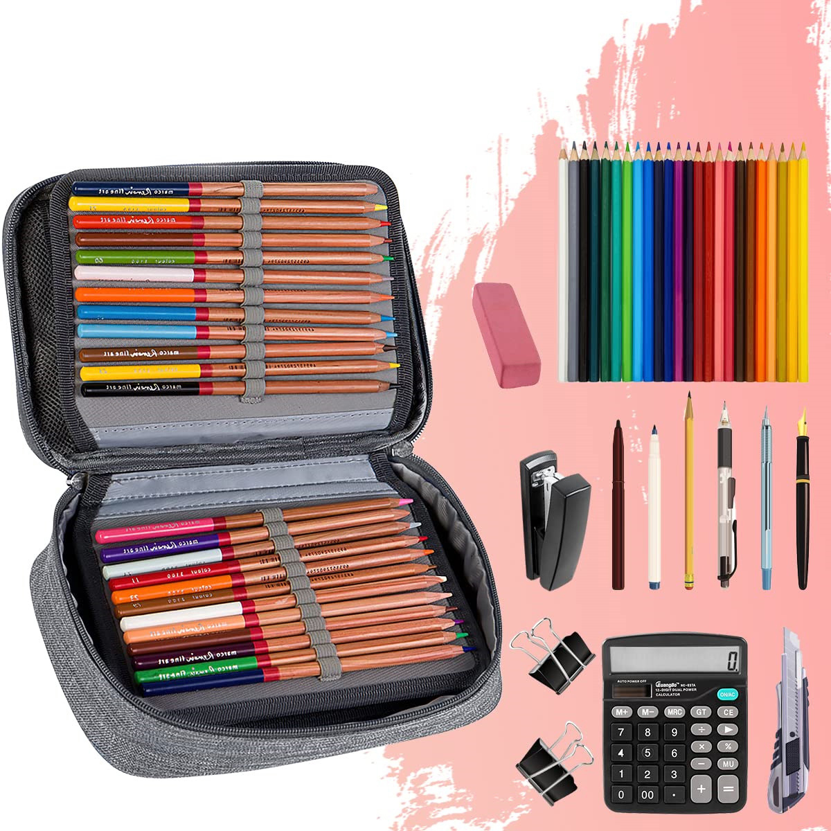 【Велика ємність】 Розмір цього олівського корпусу становить 22 х 16,5 х 6,5 см, а великий розмір може вмістити щонайменше 72 олівці. Він пропонує багато місця для еластики, скоб, ножиць, кліпів, кольорових олівців, температури, еластики, ручок, олівців та ювелірних виробів.