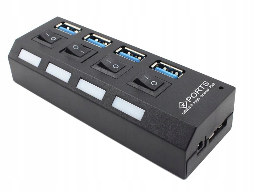 Концентратор на 4 порти USB, підключається до комп'ютера для збільшення кількості портів USB. Кожен порт оснащено перемикачем ON / OFF, що полегшує вашу роботу та дозволяє використовувати USB-пристрій у будь-який час.