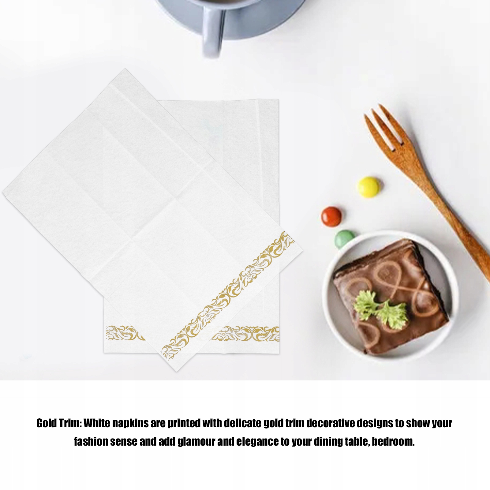 1. Золоті оздоблення: Білі серветки надруковані з ніжними золотими декоративними оздобленнями, щоб показати своє відчуття моди та додати блиску та елегантності до вашого столу, спальні.