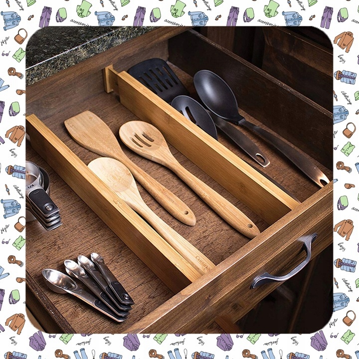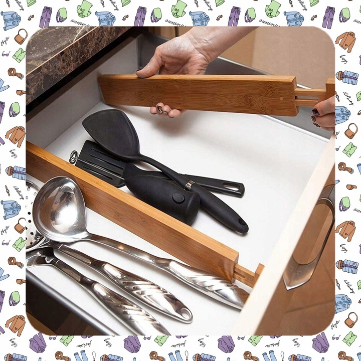 Наші бамбукові роздільники для ящиків — це простий спосіб контролювати хаос у будь-який час і створити ідеально організований простір. Завдяки регульованій довжині (від 44 до 56 см) вони підійдуть для більшості ящиків на кухні, у ванній, гардеробній чи письмовому столі.