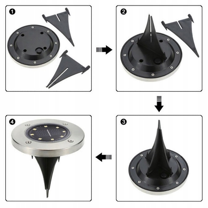 Набір із 4 садових ламп, 12 світлодіодів, 1 Вт, НАЗЕМНА СОНЯЧНА СИСТЕМА, водонепроникність IP54