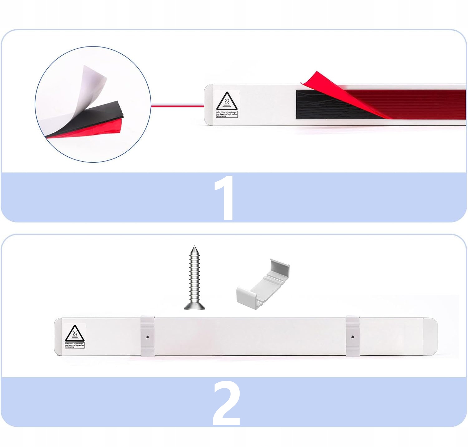 ✔️Виготовлено з надтонкого, зносостійкого алюмінієвого сплаву 1 см і ПВХ-карти з високою світлопроникністю, забезпечує хорошу світлопроникність і м’яку, світло без відблисків. ① Наклейте двосторонній скотч на гладку поверхню. ② Використовуйте монтажний кронштейн і закріпіть його гвинтами.