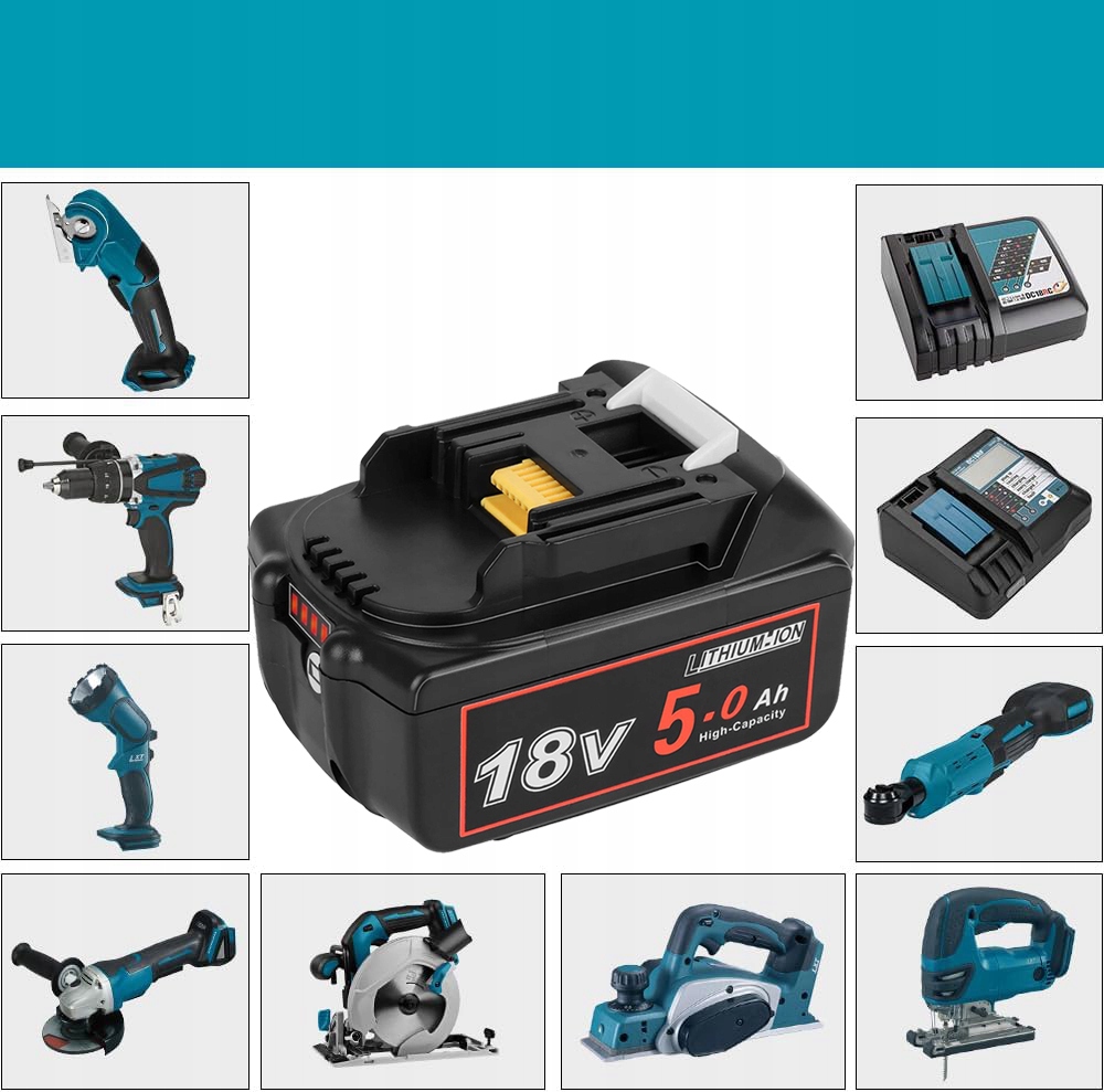 � тип акумулятора 18 V: li-ion || Напруга: 18 V || Ємність: 5000 мАг / 5.0 Ах || Якісна заміна акумулятора для Makita 18 V