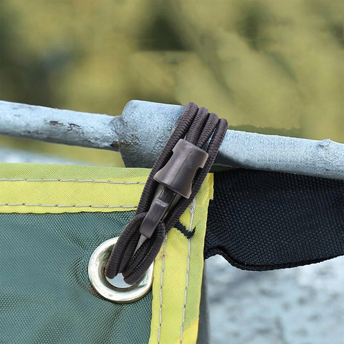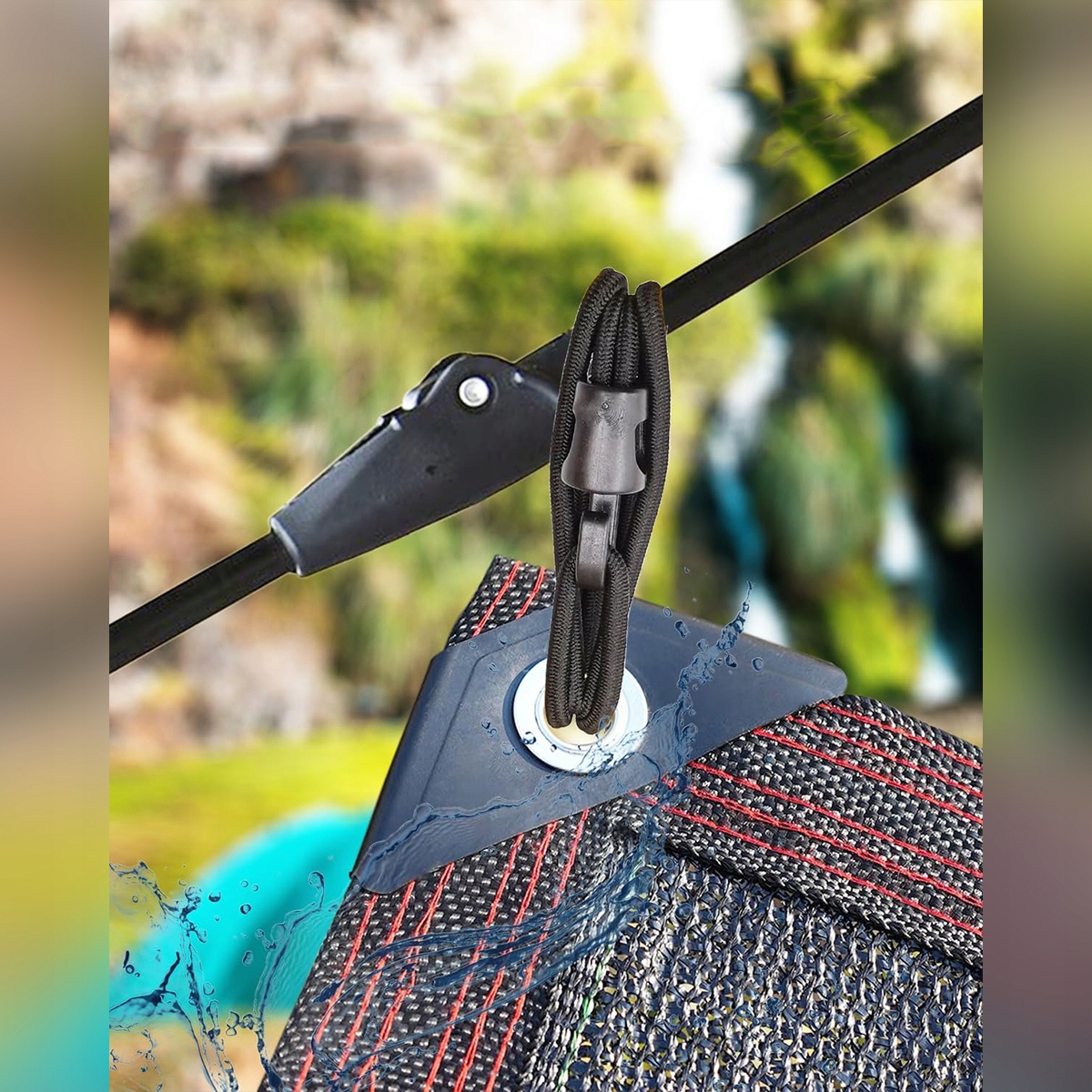 ➡ Встановлення натягу з гачками: натягувач брезенту можна легко перетягнути через проріз і підтримку, а потім заблокувати його на гачку. Ви також можете підключити кілька невеликих ліній банджі, щоб отримати додаткові довжини.
