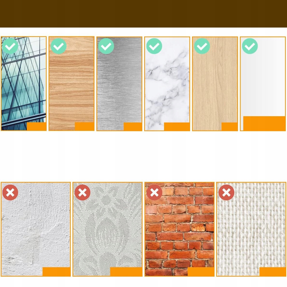 ♥ широке використання - ремінці з гачками хороші для більшості гладких поверхонь, включаючи пофарбовані стіни, плитку, метал, дерево. Однак не використовуйте на тканинах, шпалерах, вінілових поверхнях або інших делікатних або слабких поверхнях. Також не рекомендується встановлювати полиці або предмети з глибиною понад 5 см.