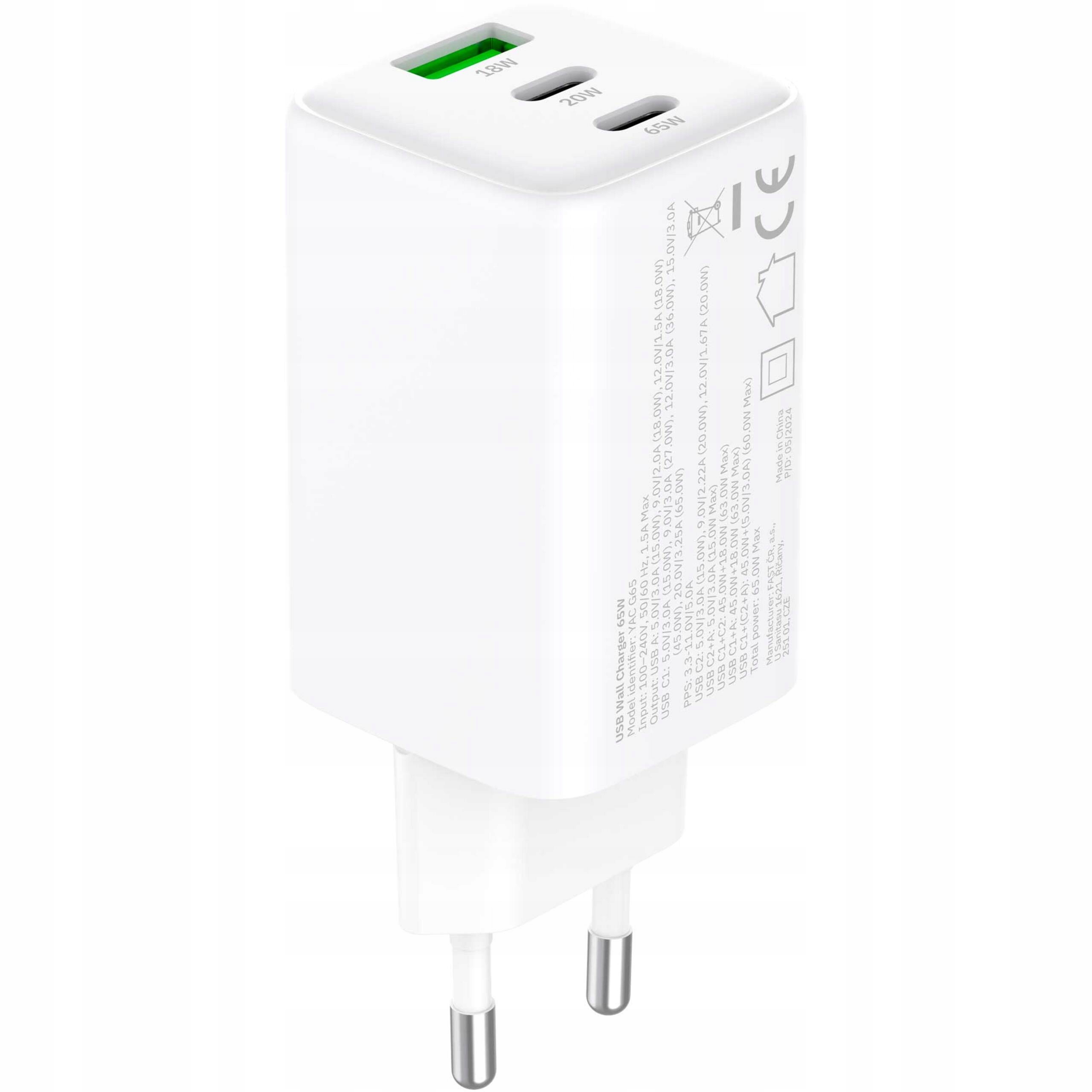 Зарядник Yenkee Yac G65 Volt пропонує швидку зарядку з вражаючою вихідною потужністю до 65 Вт. Він має три порти USB, один USB A Port та два тип USB C.