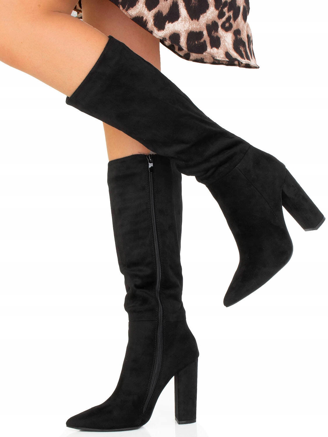 7733 ЧОРНІ ЗАМШЕВІ ЧОБОТИНКИ З ГОСТРИМ НОСОМ, КАБЛУС 41