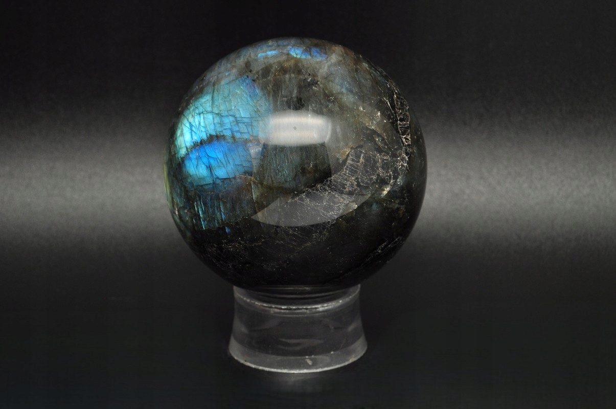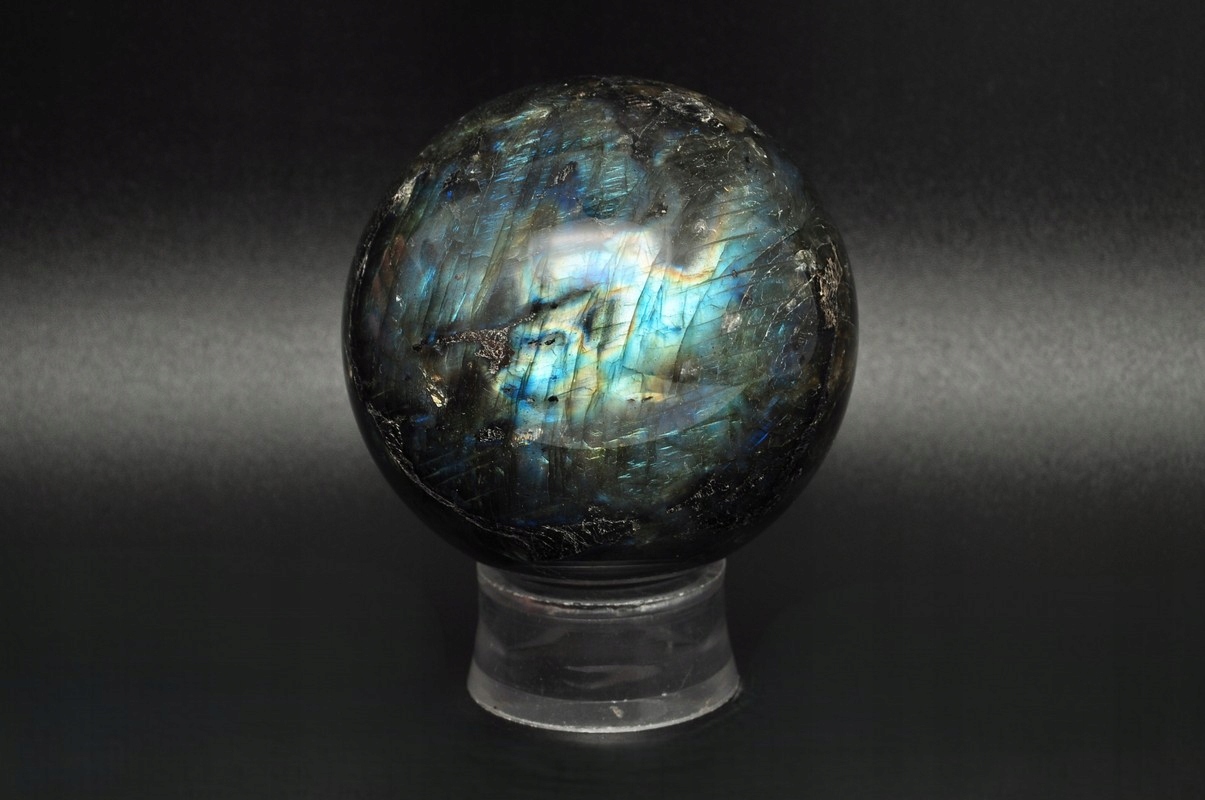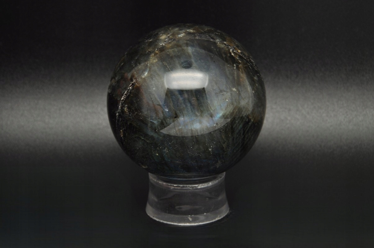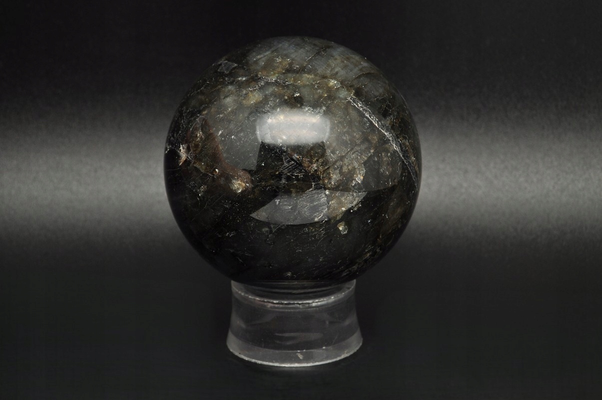 натуральний labradoryt , відшліфований м'яч. Ефект лабрадоризації, завдяки якому він прекрасно мерехвує. Він чудово підходить для колекції або прикраси.