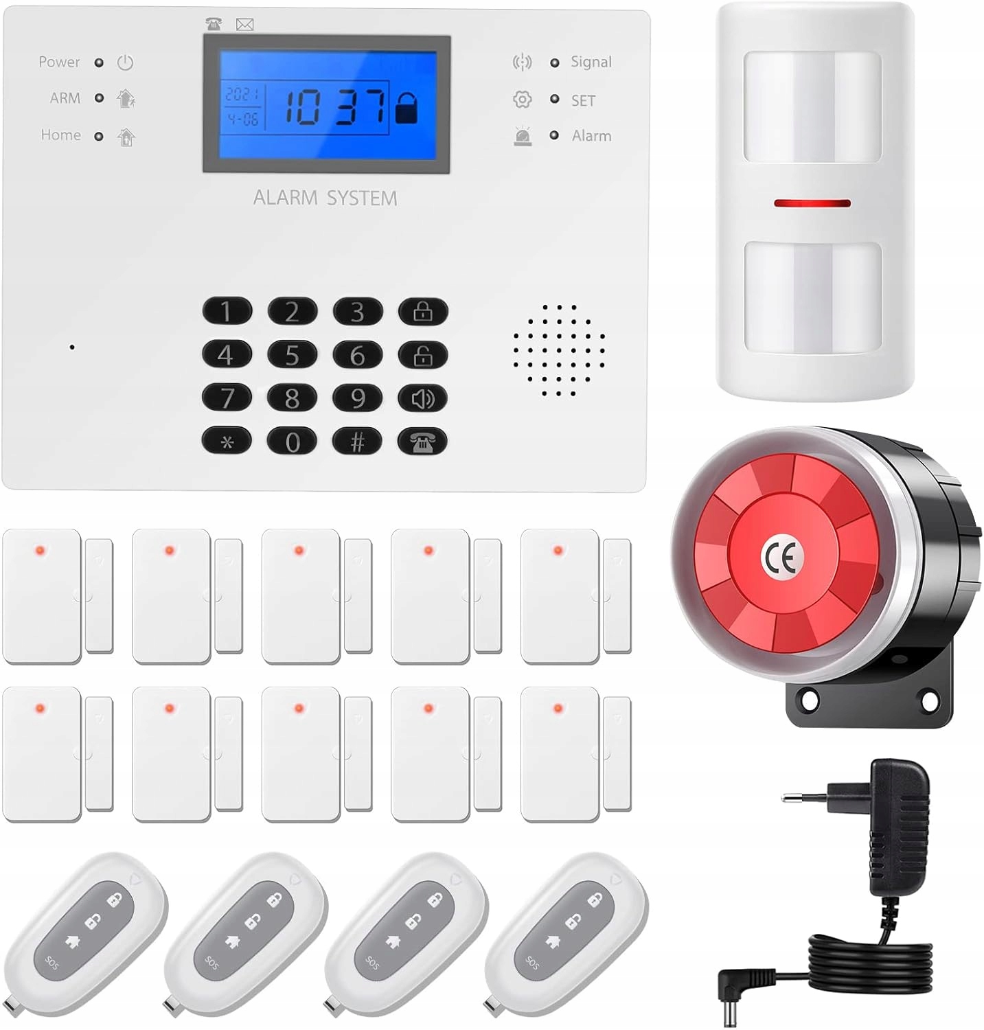 - 17 -частина сигналізації 4G - Система сигналізації підходить для квартир, кондоміні та малих компаній. Продукт містить 1 базову станцію тривоги, 10 датчиків дверей, 1 датчик руху проти рушниць, 4 пульти дистанційного керування та 1 дротова сирена